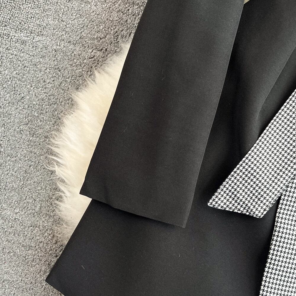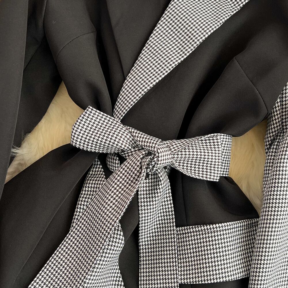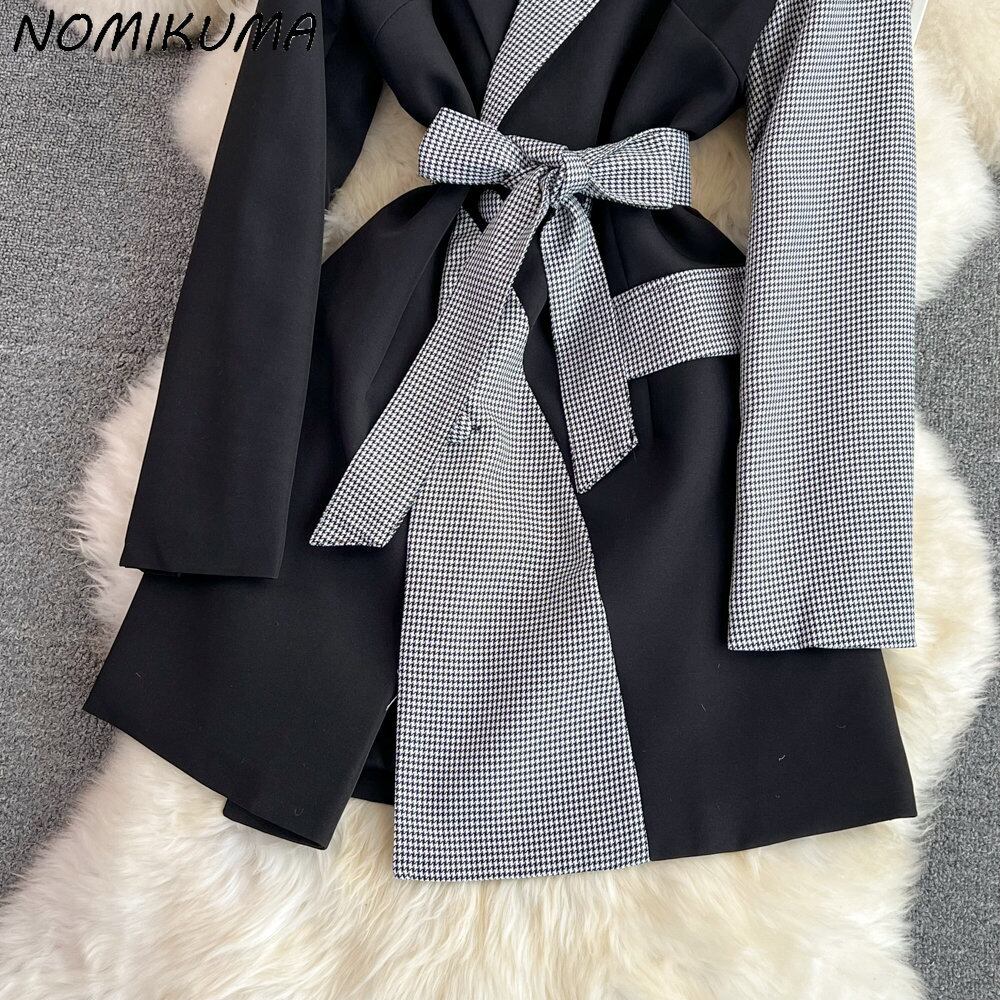 Nomikuma パッチワークヒットカラーブレザードレス弓包帯スリムウエスト女性ドレス長袖ノッチ襟 Vestidos ロング リボン kor70844680520