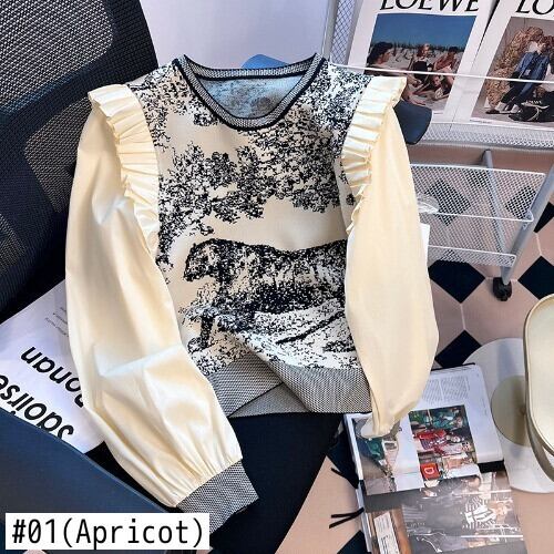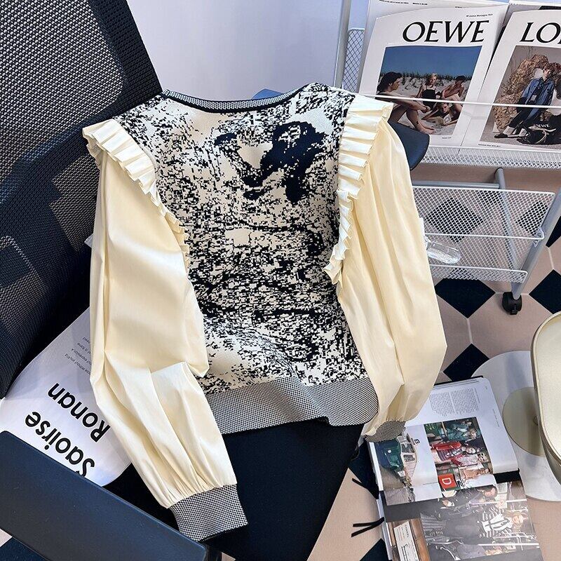 Nomikuma ジャカードパッチワークニットセーター女性春因果シックなフリル長袖ニットプルオーバートップス ロング スプリング 春物 kor30539560277