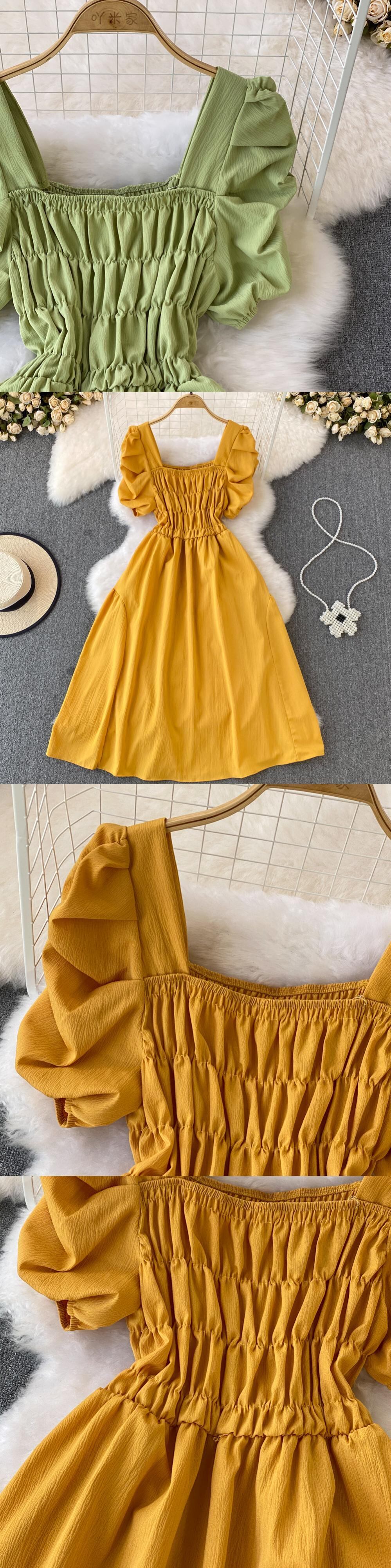 Nomikuma スクエアカラーパフスリーブ女性ドレスひだウエスト因果 A ライン Vestido 春夏ドレス スプリング 春物 サマー 夏物 Aライン スクウェア kor70848833142