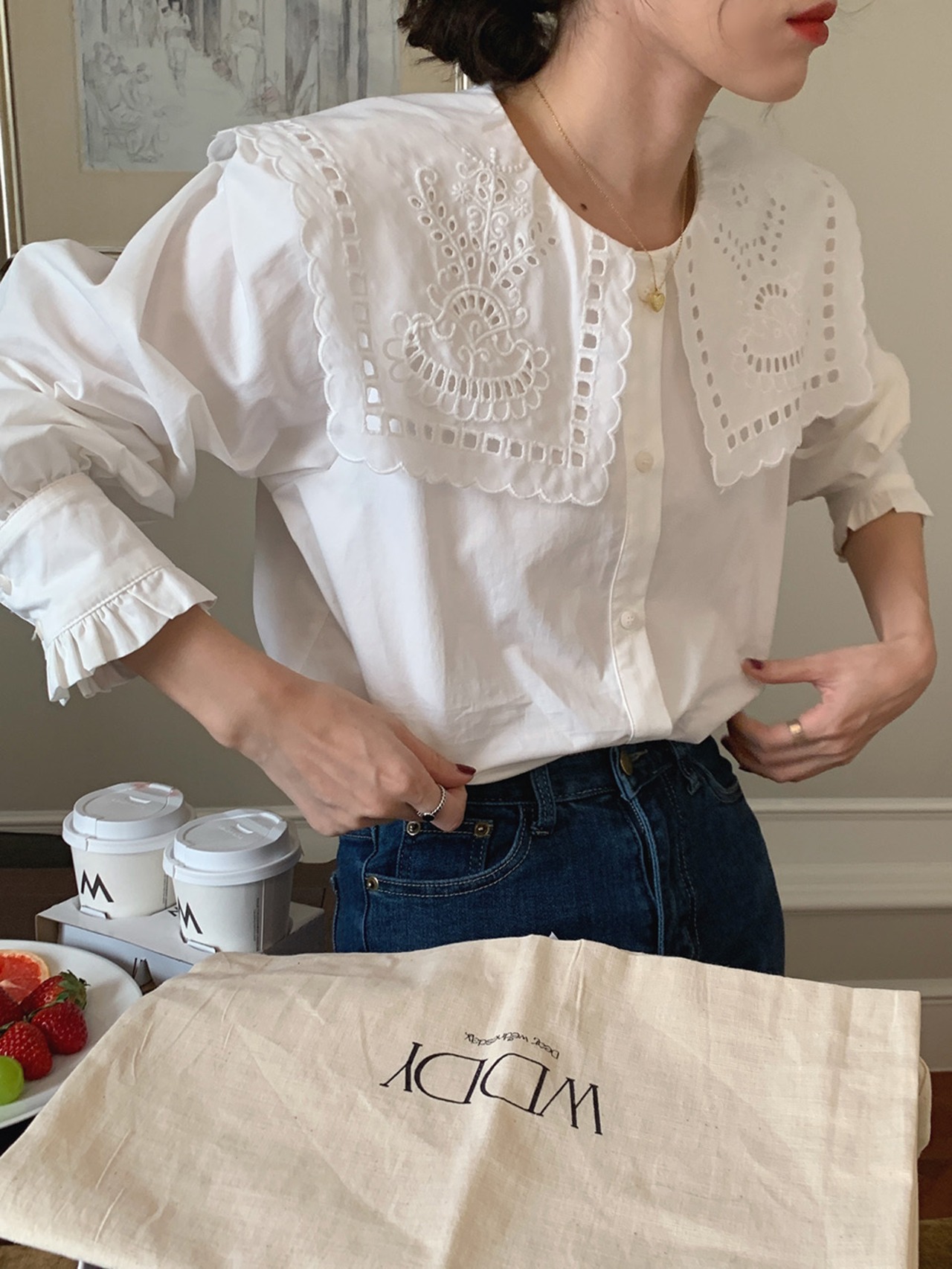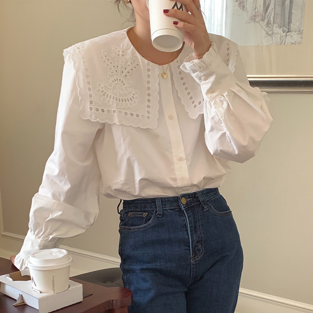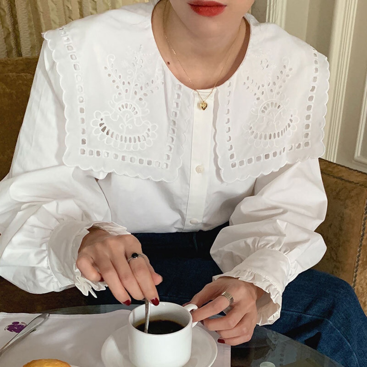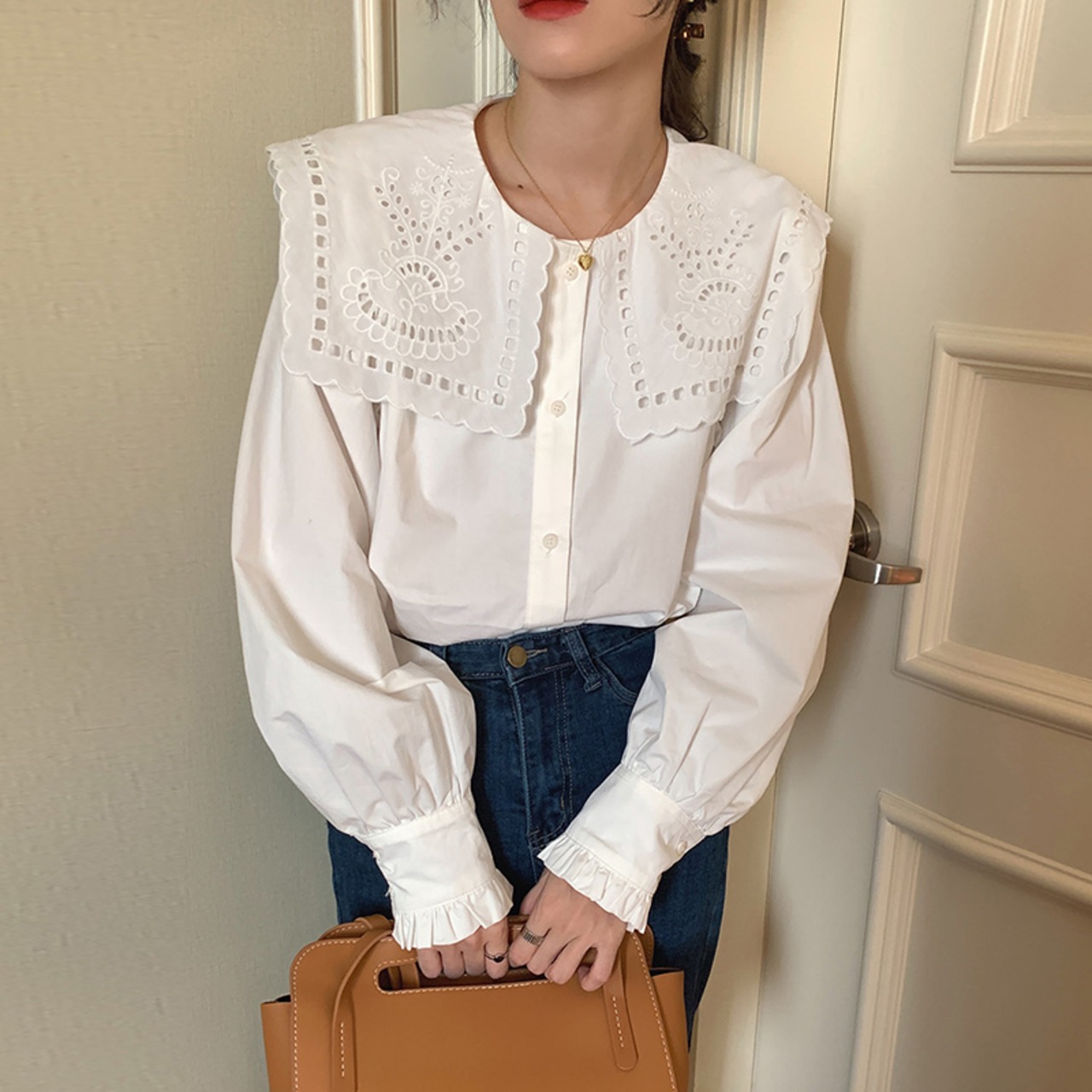 Nomikuma シックな中空アウト ターンダウン襟ブラウス トップス春パフ スリーブ女性シャツ因果デ スプリング 春物 kor42512761652