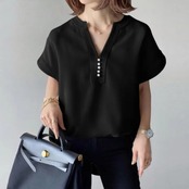 Nomikuma シックなビーズ V ネック半袖女性ブラウス春夏スウィート シャツ因果プルオーバー トップ ショート ハーフスリーブ 大人ガーリー キュート カジュアル スプリング 春物 サマー 夏物 Vネック kor16014990348