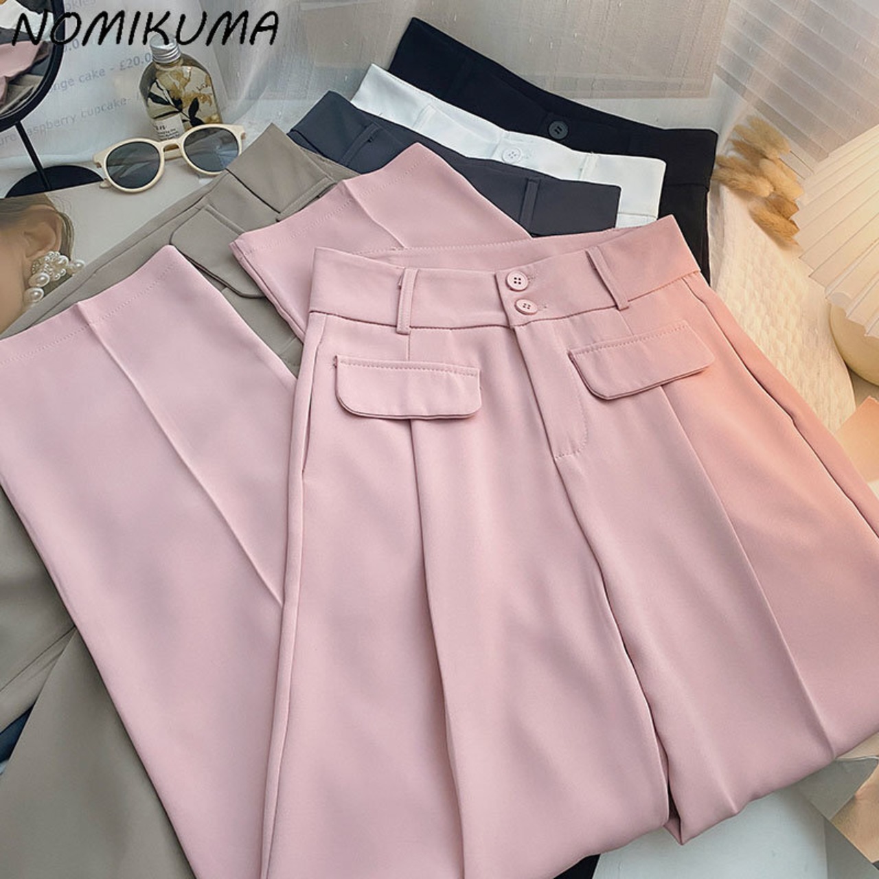 ノミクマ無地スーツパンツ女性春長ズボン因果ウエストストレートパンツ ロング スプリング 春物 ソリッドカラー kor86118720404