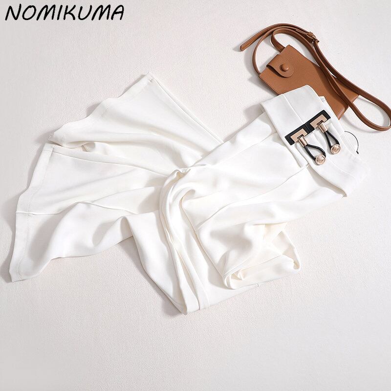 ノミクマウエストスーツロングパンツ春秋の女性のズボン因果無地パンツ スプリング 春物 オータム 秋物 ソリッドカラー kor18333514190