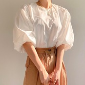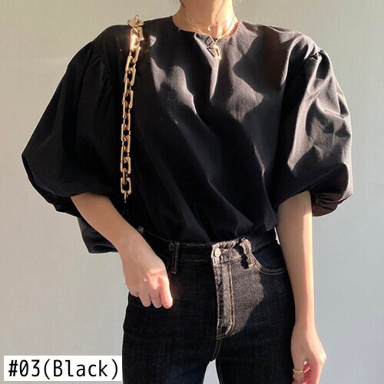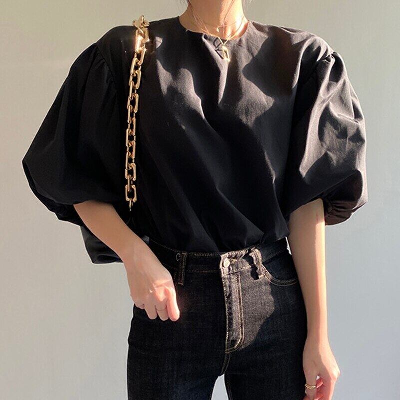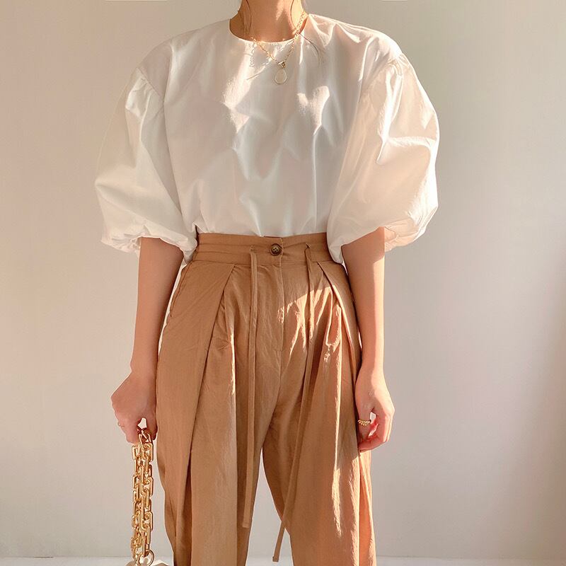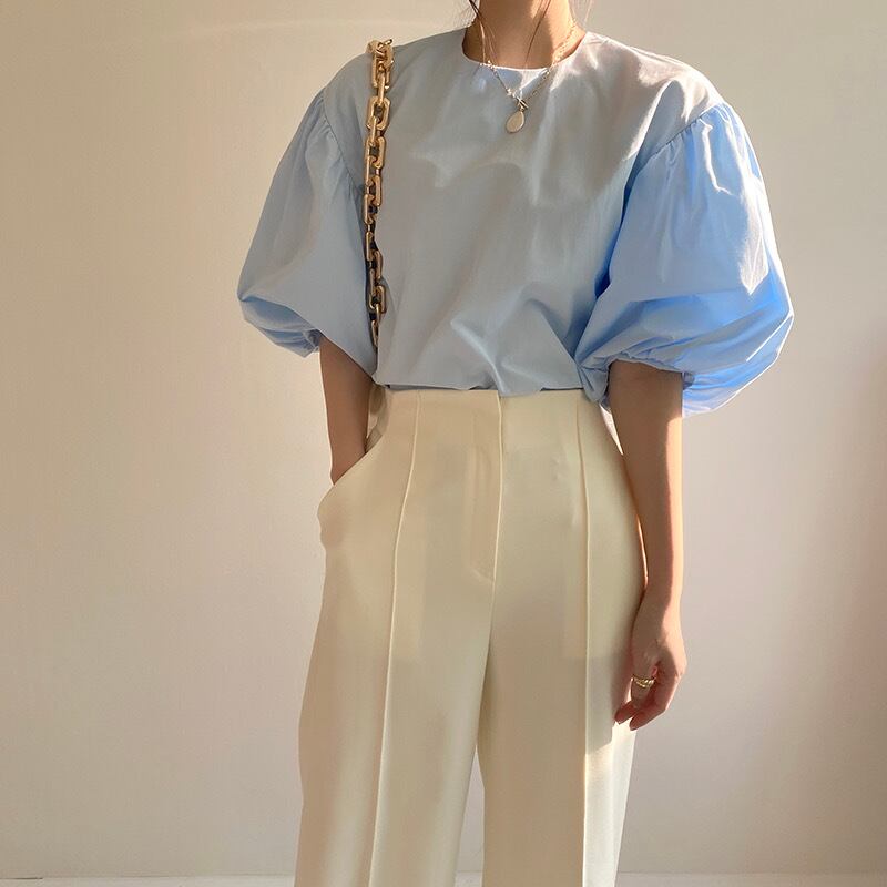 Nomikuma シックなランタンスリーブ O ネックブラウストップス因果無地甘い女性人形シャツ春夏プルオーバー 大人ガーリー スウィート キュート カジュアル スプリング 春物 サマー 夏物 Oネック ソリッドカラー kor68974055482