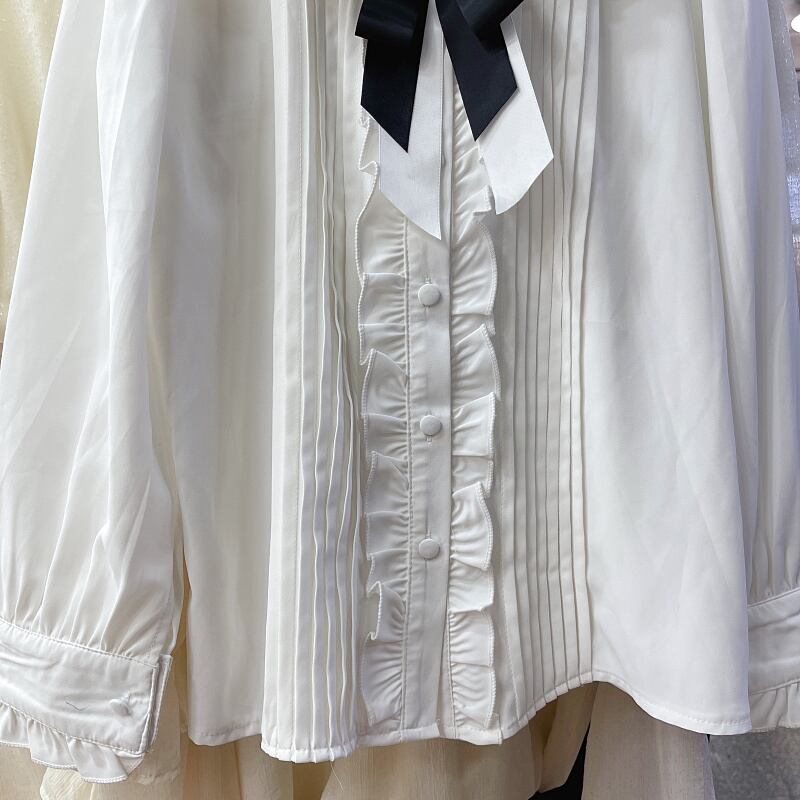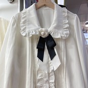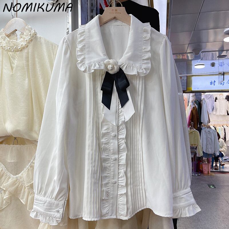 Nomikuma シックフラワーちょう結びブラウスシャツピーターパン襟フリルシングルブレストレディーストップスデモーダ リボン フラワーデザイン kor99797241257