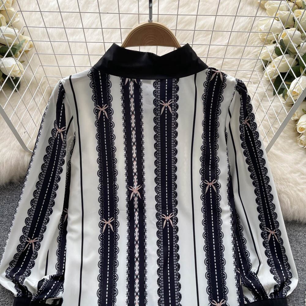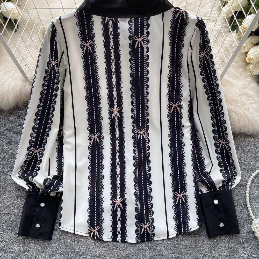 Nomikuma 春秋ヒットカラーブラウストップスランタンスリーブターンダウン襟レディーストップス女性シャツ スプリング 春物 オータム 秋物 kor36856104057