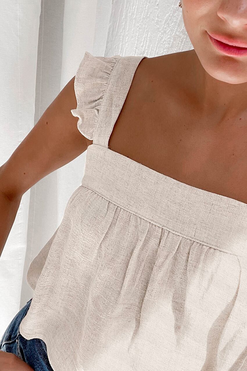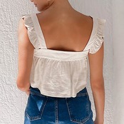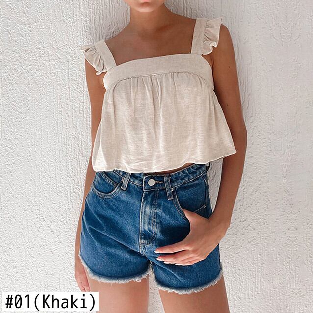 Nomikuma 夏シックなフリルタンク因果甘い女性キャミソール無地コットンリネンショートタンクトップ 大人ガーリー スウィート キュート カジュアル サマー 夏物 ソリッドカラー kor99417689377