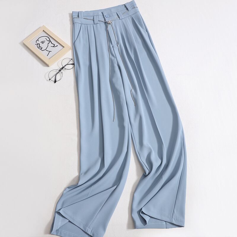 Nomikuma 春秋の因果ワイドレッグパンツ女性チェーンウエスト長ズボン因果無地パンツデ ロング スプリング 春物 オータム 秋物 ワイドパンツ ソリッドカラー kor25125141065