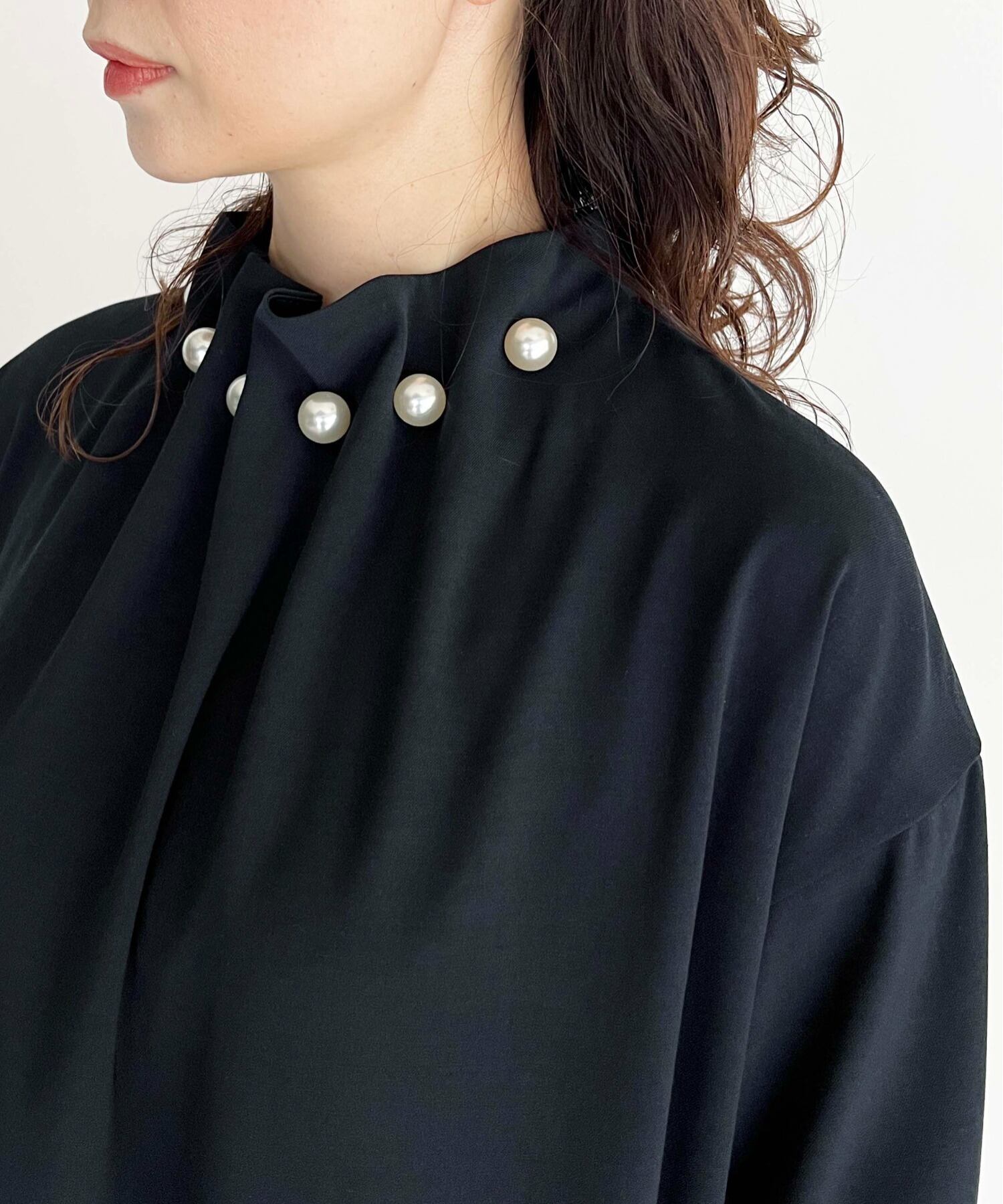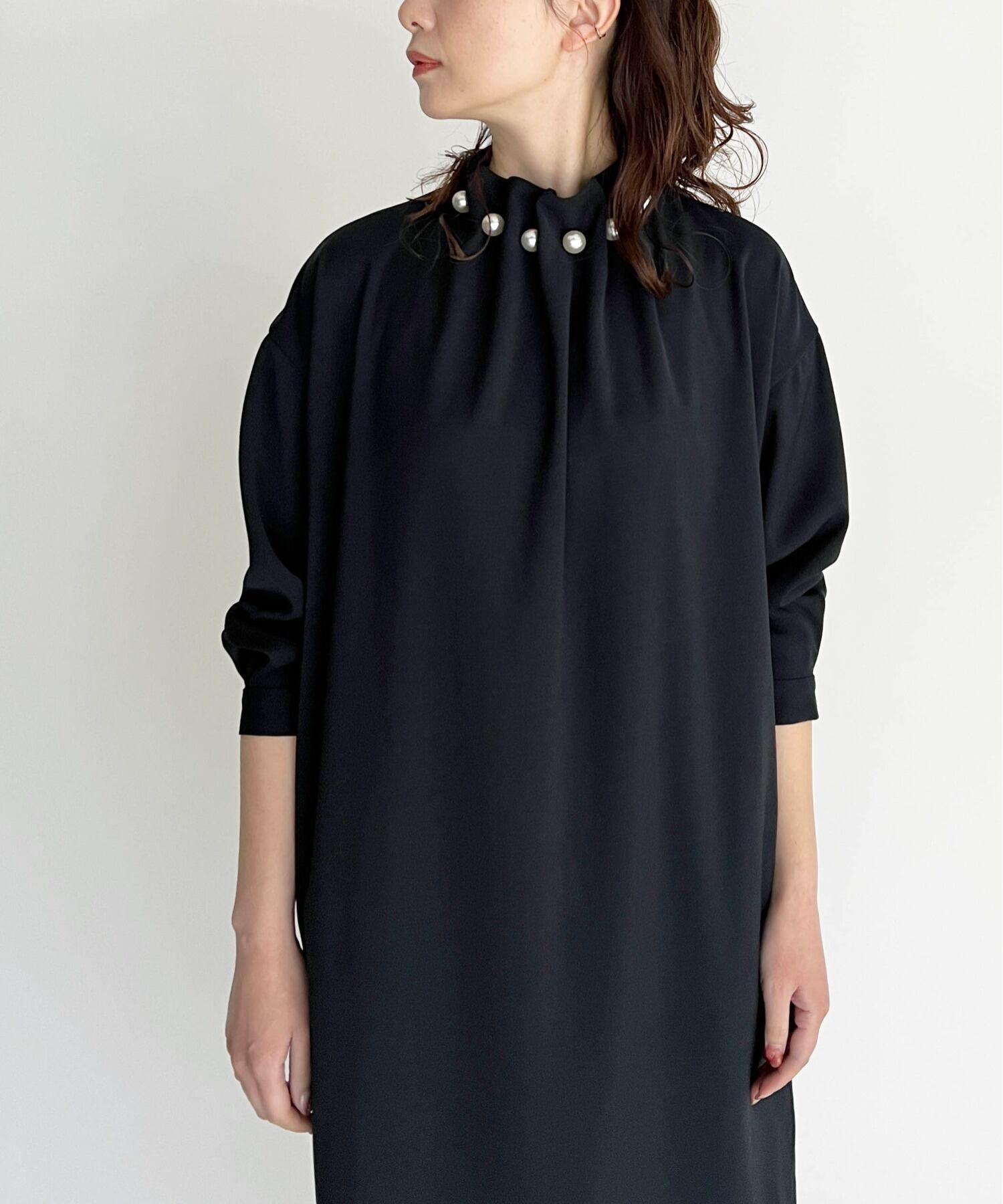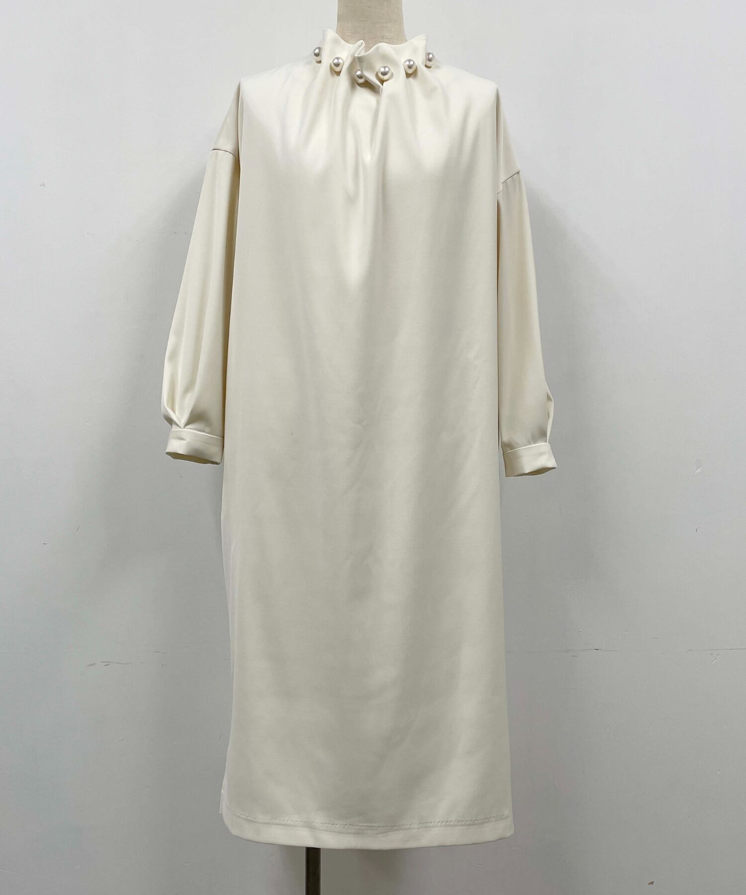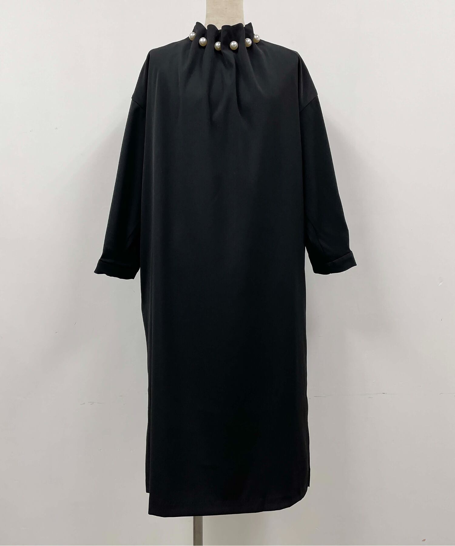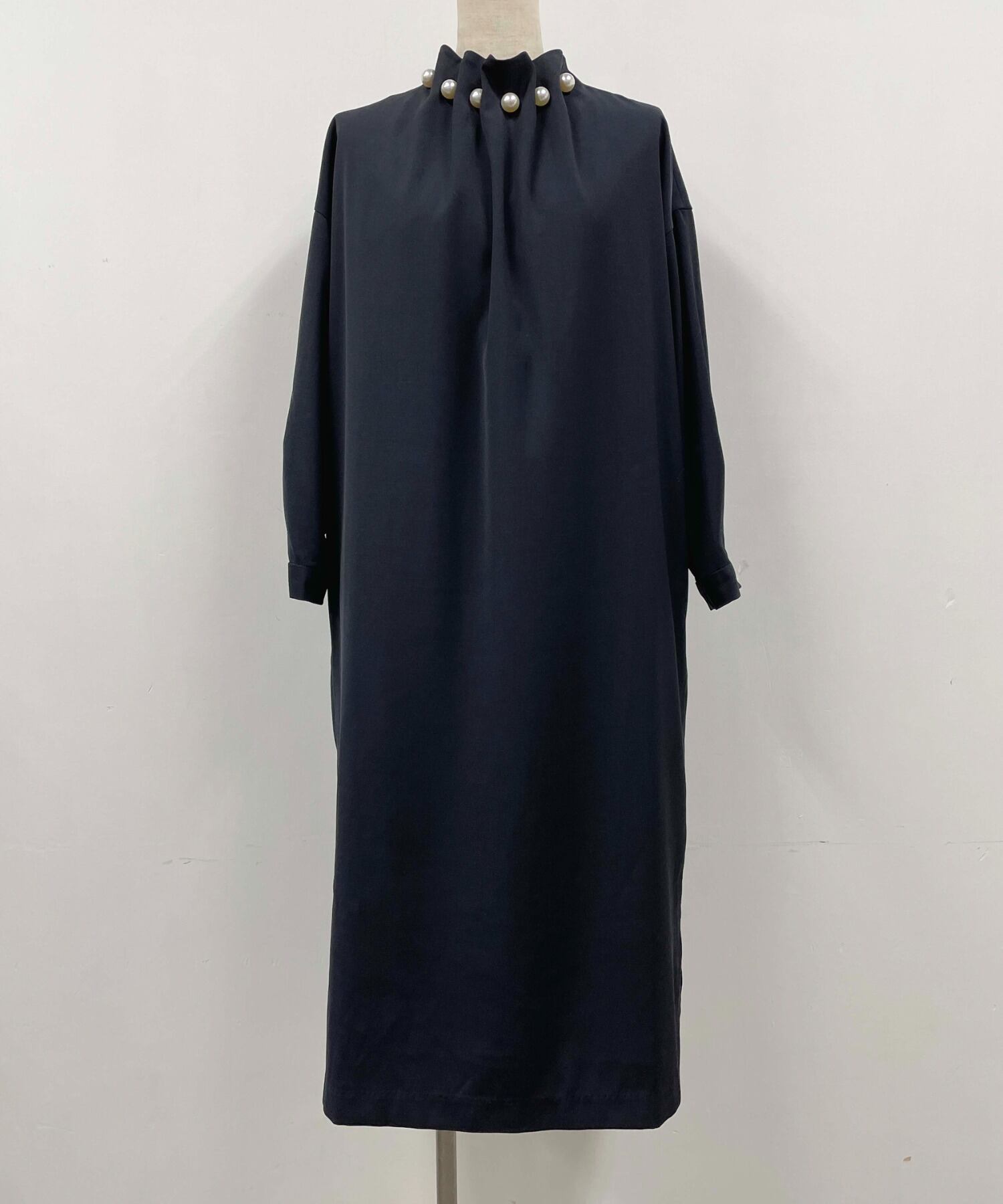 Nomikuma 無地ストレートドレスシックなビーズスタンドネックロングスリーブ女性ドレス春 Vestidos 長袖 スプリング 春物 ソリッドカラー kor66307120728