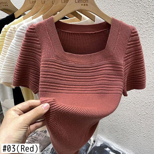 Nomikuma スクエアカラーニット女性半袖 Tシャツトップス夏スリム底入れグラフィック Tシャツプルオーバー ショート ハーフスリーブ サマー 夏物 スクウェア kor55737440972