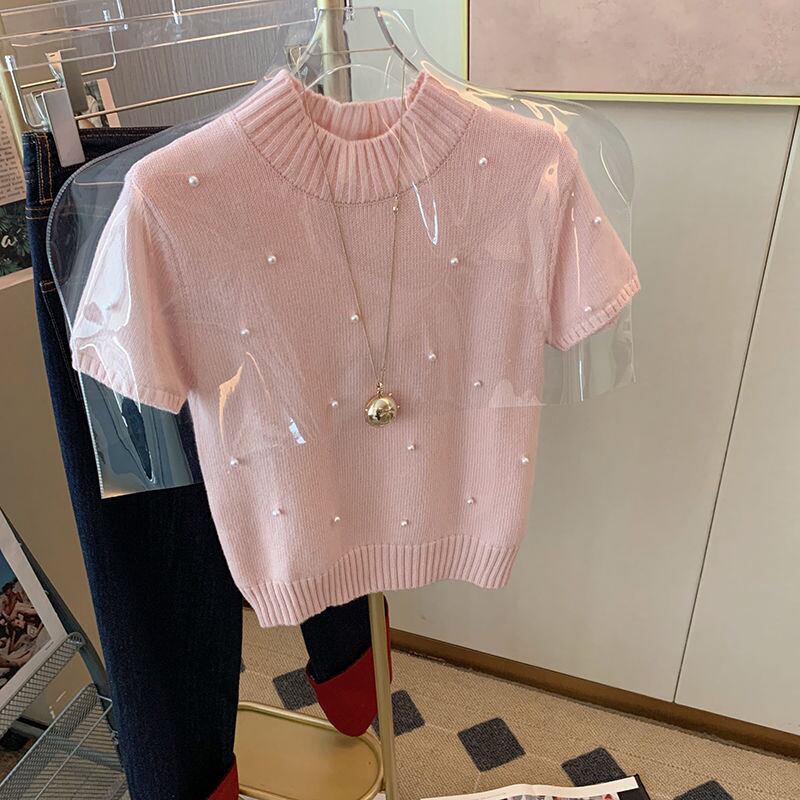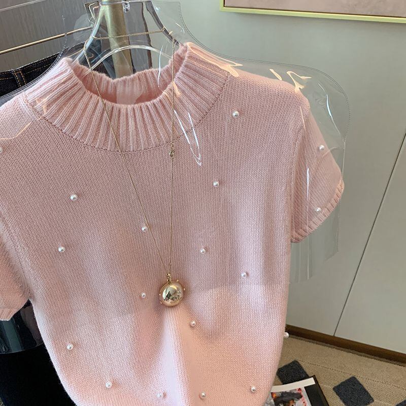 Nomikuma シックなビーズ半袖 O ネックニット女性春夏ニットトップス因果甘いセーター ショート ハーフスリーブ 大人ガーリー スウィート キュート カジュアル スプリング 春物 サマー 夏物 Oネック kor11921559838