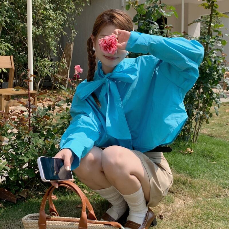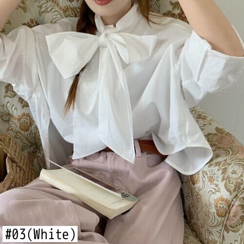 Nomikuma 弓包帯女性ブラウストップス因果ランタンスリーブシャツ小枝夏 リボン サマー 夏物 kor65419564279