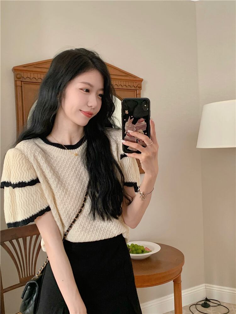 Nomikuma シックなヒットカラーフレアスリーブ女性ニットトップス夏セーター因果 O ネックニットトップス サマー 夏物 Oネック kor55638702219