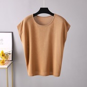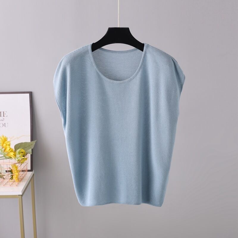 Nomikuma アイスノースリーブ Tシャツ女性の夏の因果ソリッド Tシャツトップス O ネックプルオーバーグラフィック Tシャツ サマー 夏物 Oネック シルク ソリッドカラー kor89639303181