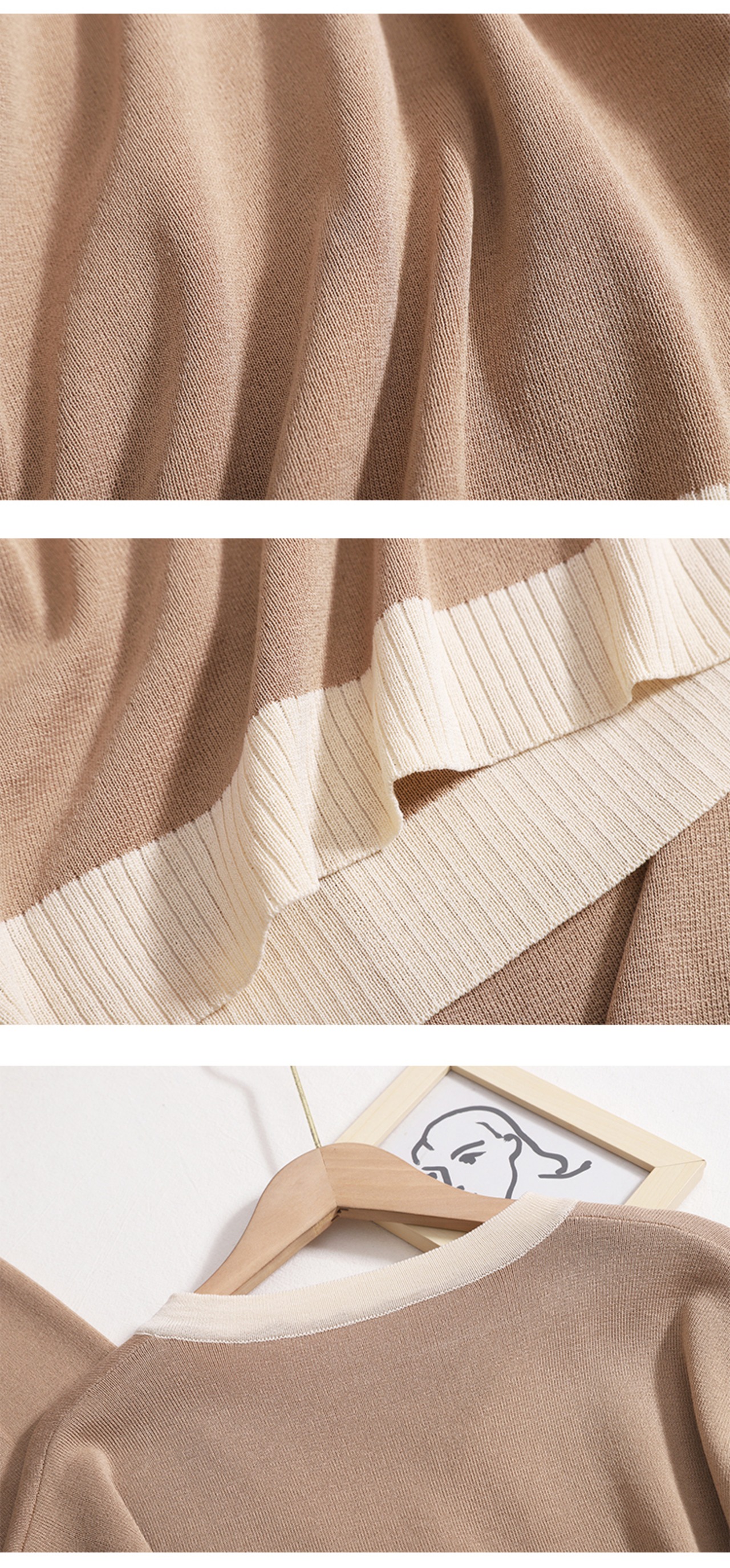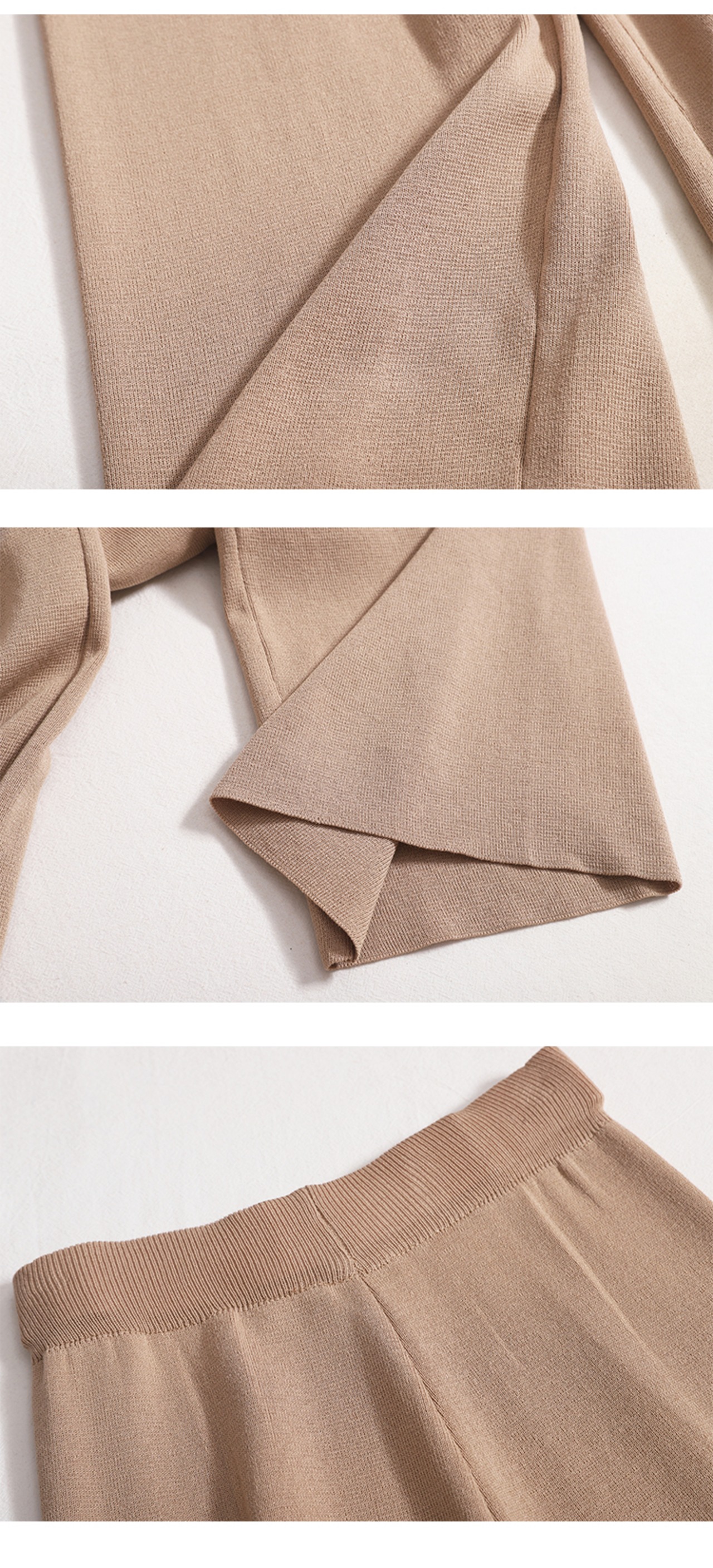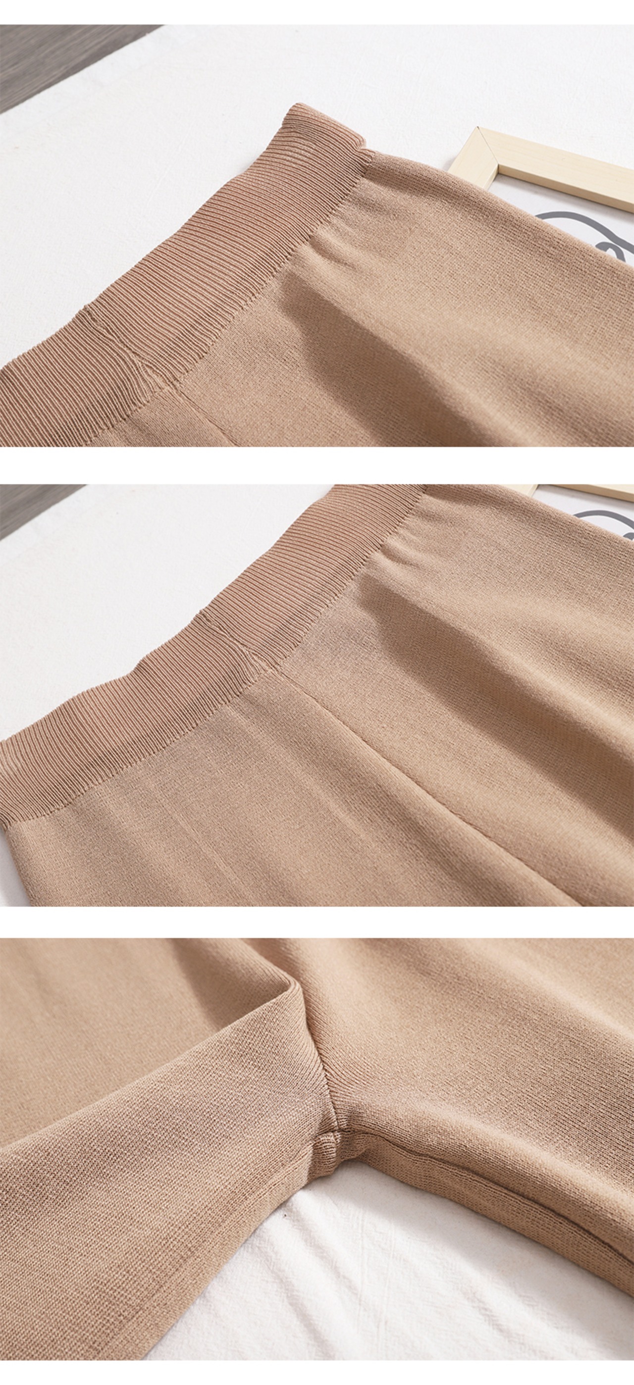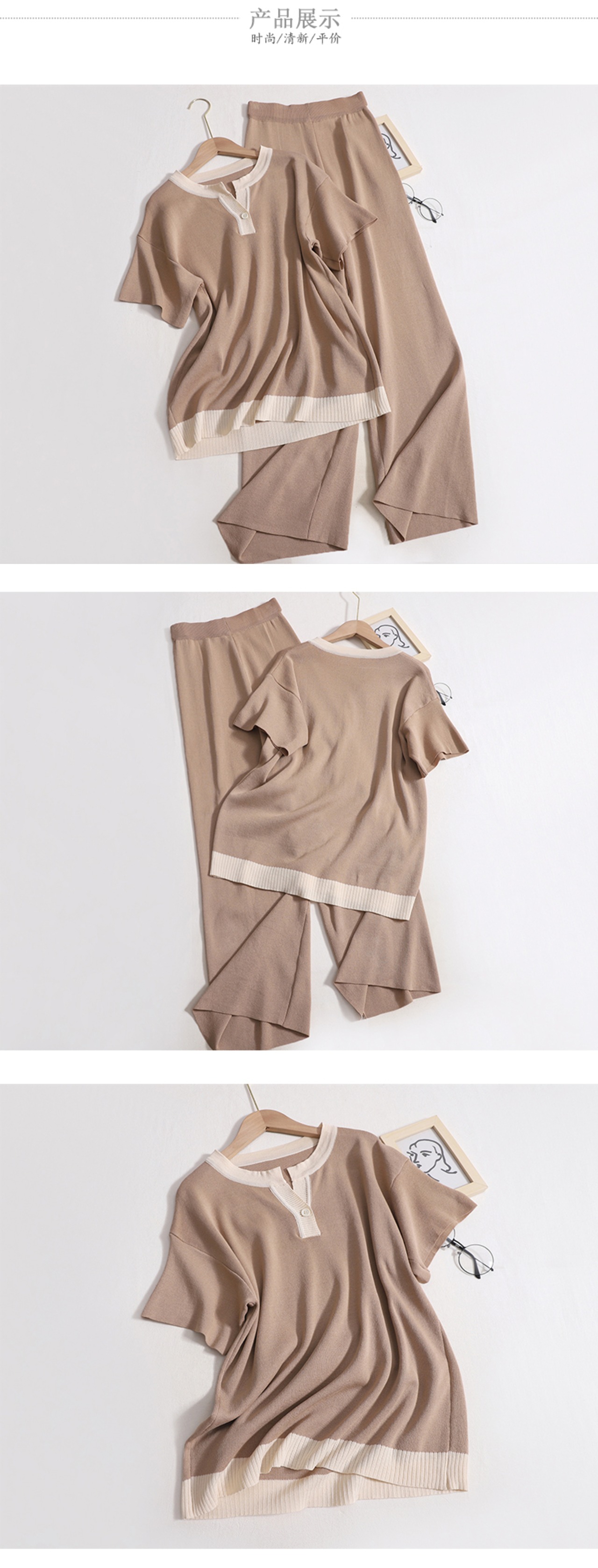 ノミクマ 2点セット レディース ヒットカラー Vネック 半袖 ニット トップス + ウエスト ワイドレッグ セーター ロングパンツ ショート ハーフスリーブ ワイドパンツ kor23830039457