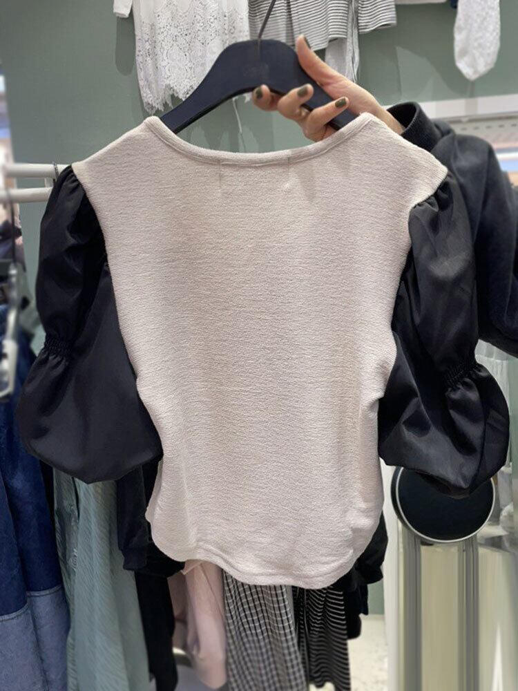 Nomikuma スウィートパフスリーブパッチワークグラフィック Tシャツシックな O ネックプルオーバートップス春夏の女性 Tシャツ 大人ガーリー キュート カジュアル スプリング 春物 サマー 夏物 Oネック kor99400480742