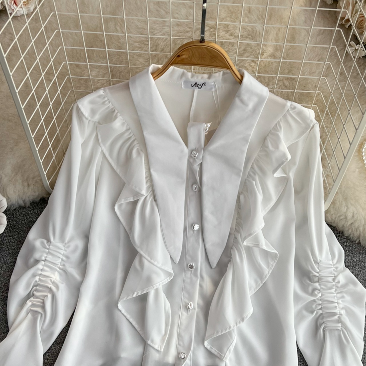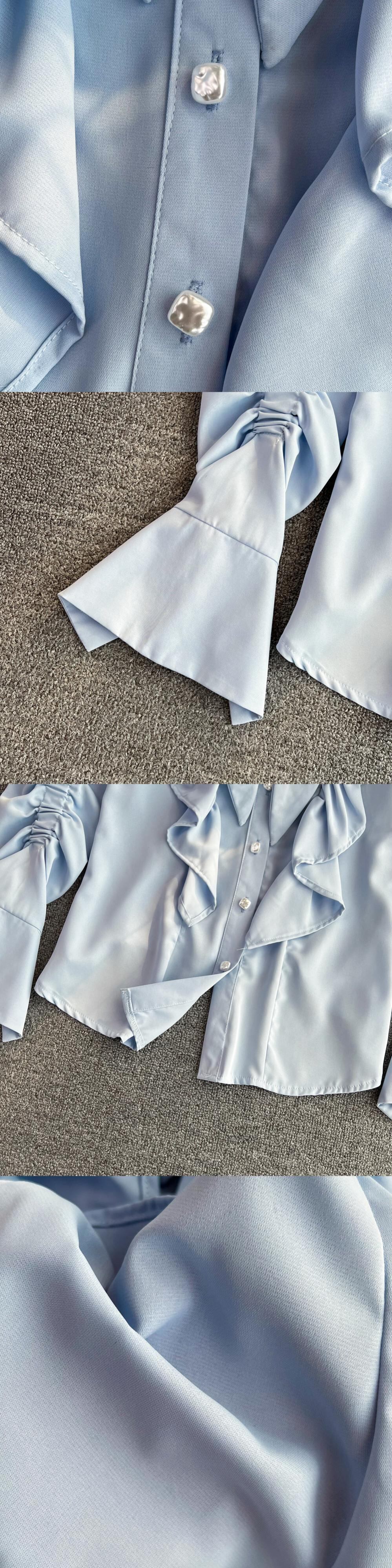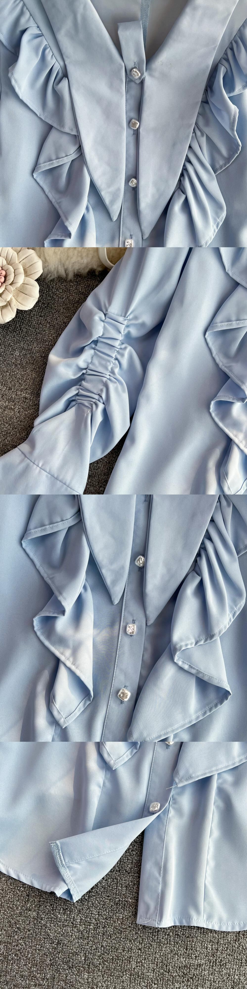 Nomikuma 春の甘いフレアスリーブターンダウンカラーブラウスシャツ因果シックなフリルパッチワークレディーストップス 大人ガーリー スウィート キュート カジュアル スプリング 春物 kor23278740531