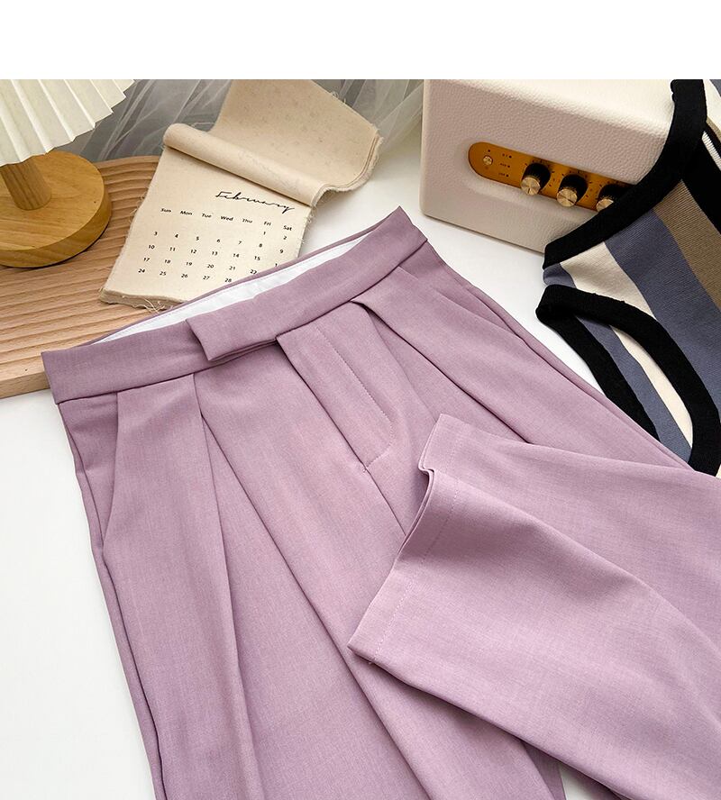 Nomikuma ウエストスーツロングパンツ春夏女性のズボン因果無地ストレートパンツデ スプリング 春物 サマー 夏物 ソリッドカラー kor8042838214