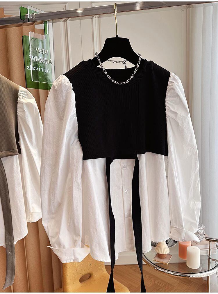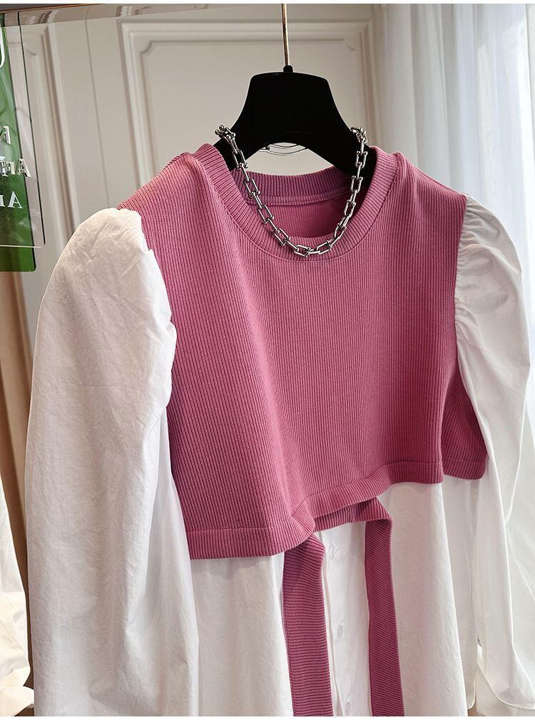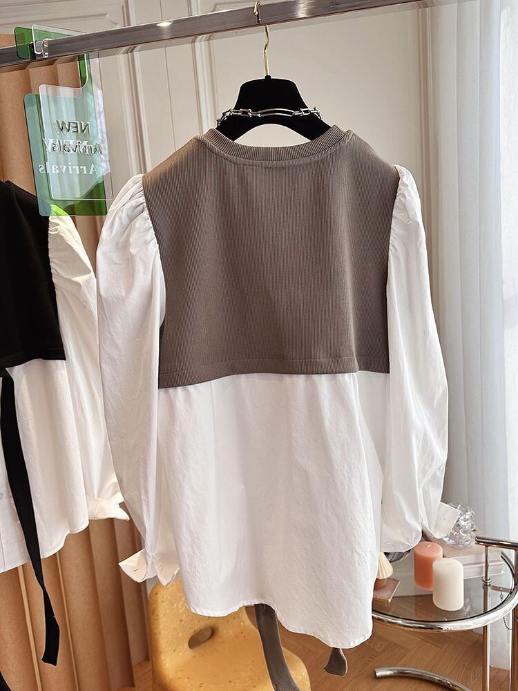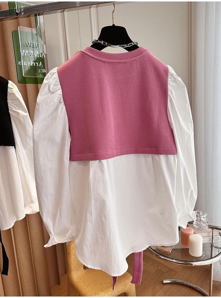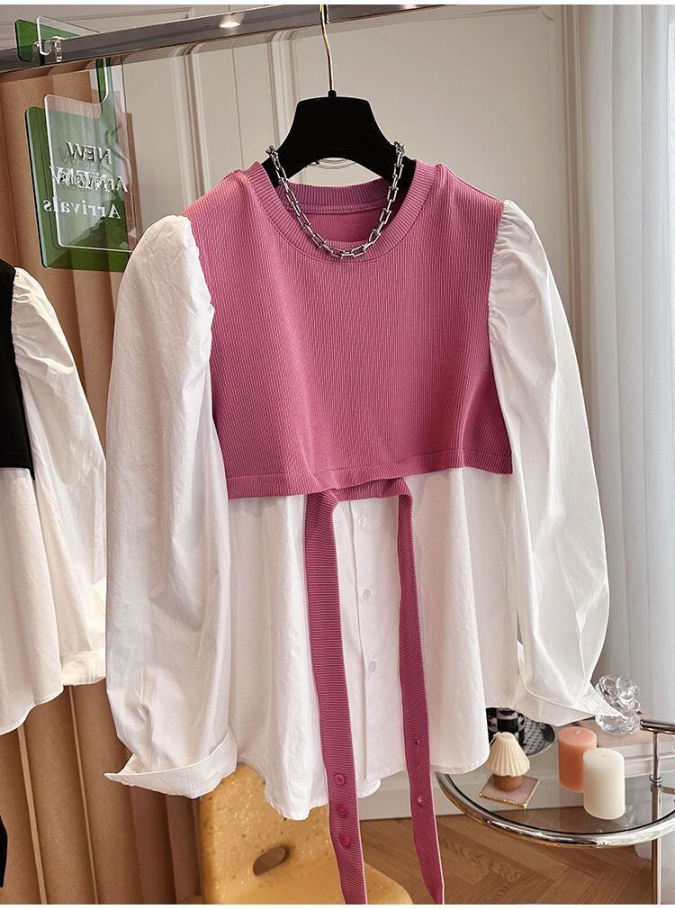 Nomikuma 春秋ブラウスパッチワークトレーナーフェイク二枚女性ジャンパープルオーバーパーカー スプリング 春物 オータム 秋物 kor40007656075
