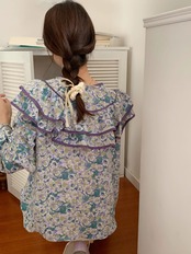 Nomikuma シックなレイヤードフリル花柄シャツ因果長袖 O ネック女性ブラウストップス春デ ロング スプリング 春物 Oネック kor19225348886