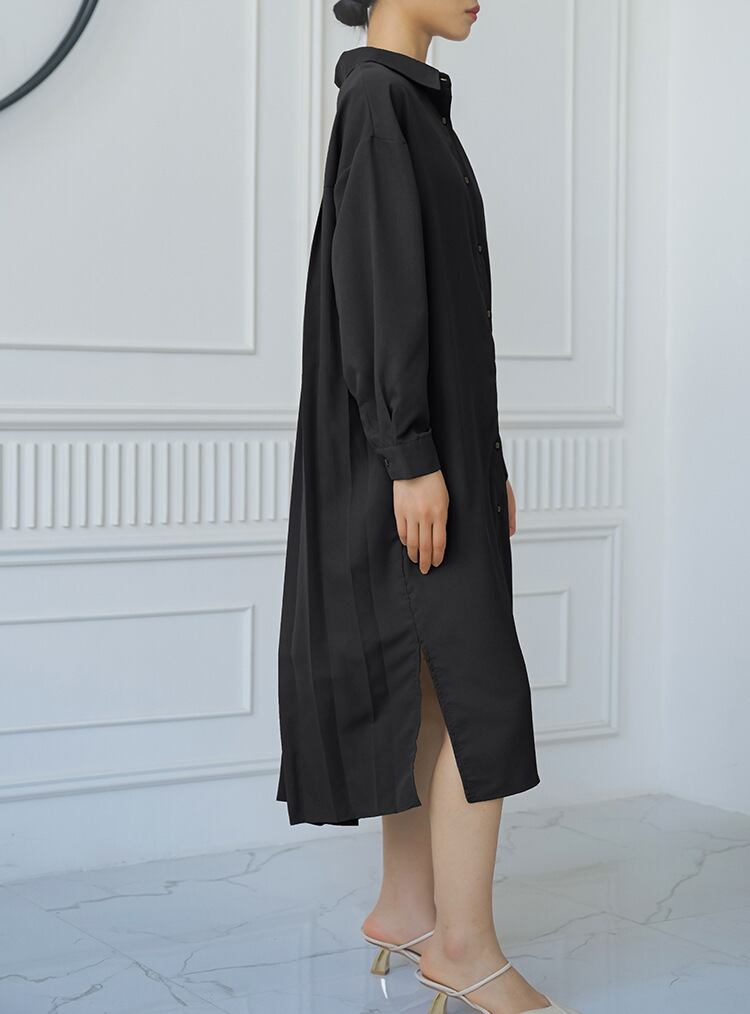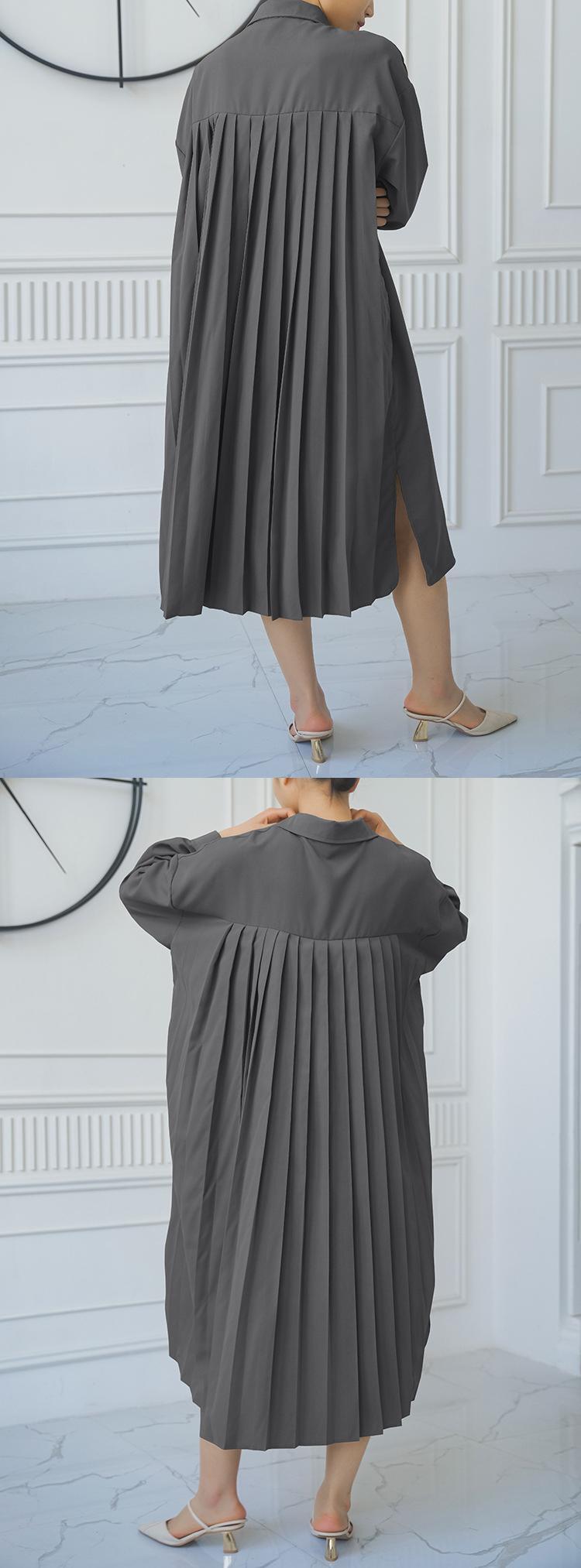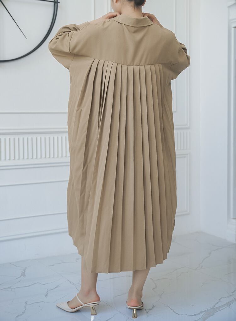 Nomikuma 因果バックひだロングブラウスドレスロング Slevee ターンダウン襟の女性のドレス春秋 Vestidos スプリング 春物 オータム 秋物 kor15803360378