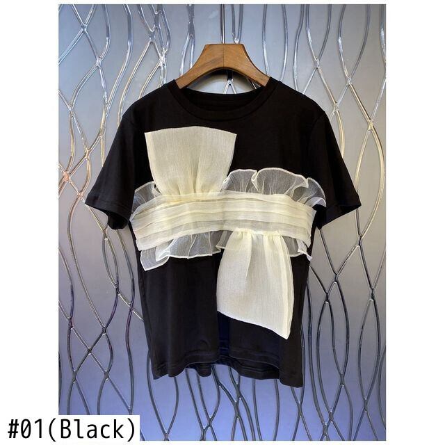 Nomikuma 甘いフリルパッチワークグラフィック Tシャツ因果半袖 O ネック Tシャツトップスシックな女性 Tシャツ ショート ハーフスリーブ 大人ガーリー スウィート キュート カジュアル Oネック kor75502874219