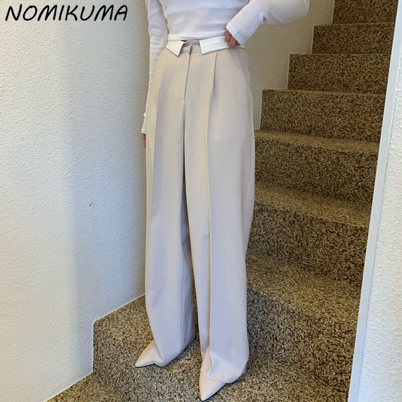 Nomikuma ヒットカラーウエスト女性スーツパンツシックな春長ズボン因果無地ストレートパンツ ロング スプリング 春物 ソリッドカラー kor65838759942