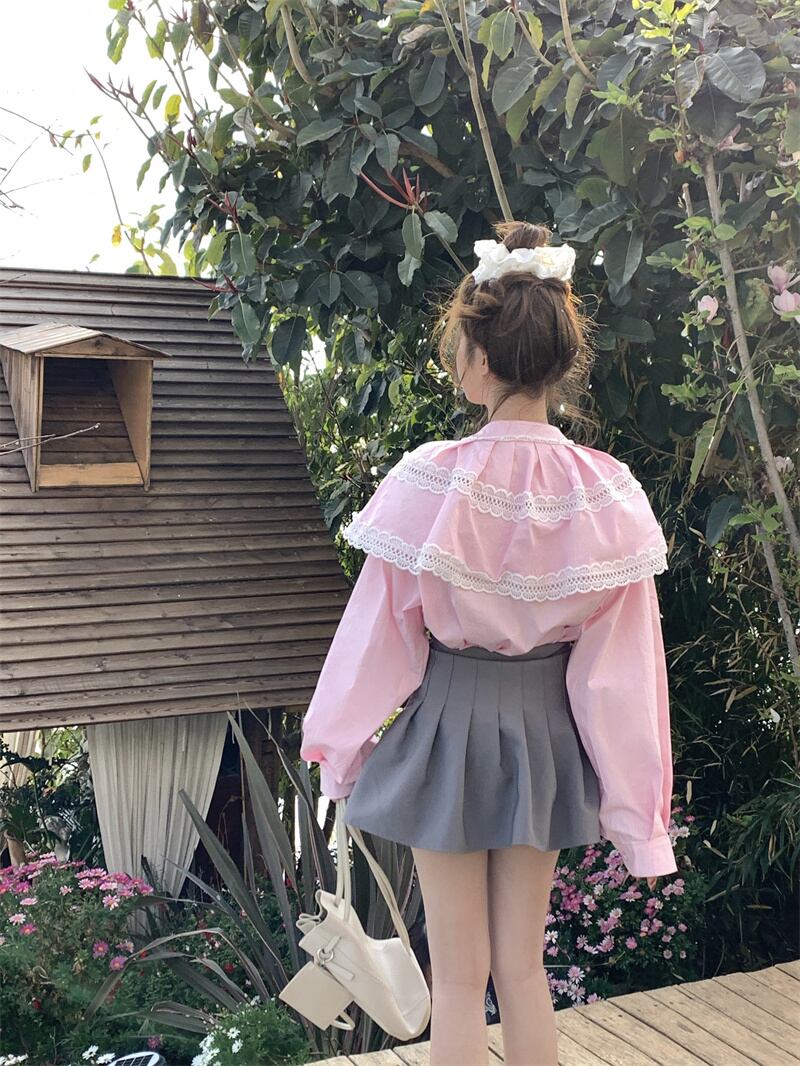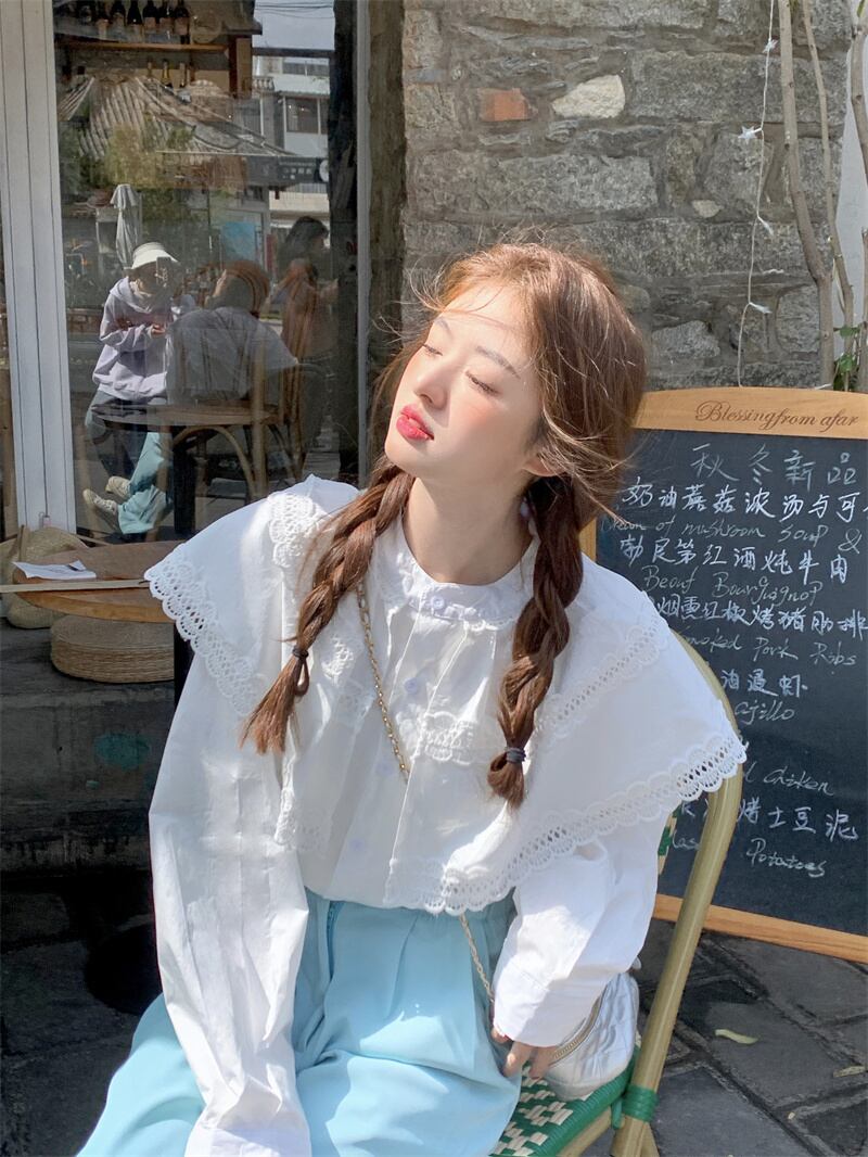 Noimikuma シックなレースパッチワークターンダウンカラーブラウス女性春シャツ因果長袖トップ ロング スプリング 春物 kor25532855594