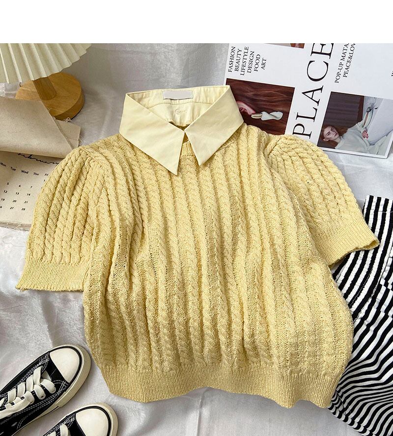 Nomikuma ターンダウンカラーパフスリーブプルオーバーニット春夏甘い女性セーターセーター 大人ガーリー スウィート キュート カジュアル スプリング 春物 サマー 夏物 kor27065861414