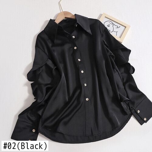 Nomikuma ブラウス女性春秋のシャツシックなフリル長袖ターンダウン襟デ ロング スプリング 春物 オータム 秋物 kor24723137318