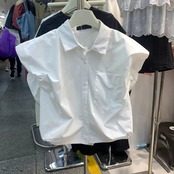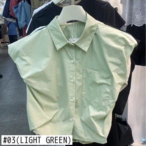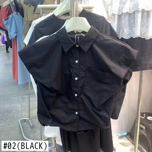 KUSAHIKI シックフライングスリーブ ターンダウンカラー ブラウス シャツ 夏 無地 レディース トップス カミサ サマー 夏物 ソリッドカラー kor36584737382