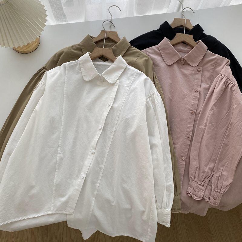 ノミクマ イレギュラー シングルブレスト ブラウス シャツ 長袖 ターンダウンカラー レディース トップス 春 秋 ロング スプリング 春物 オータム 秋物 kor96503413994