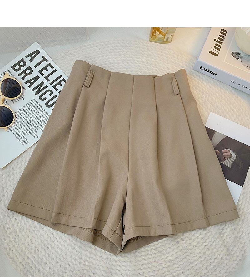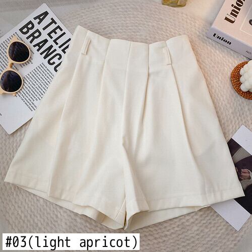 Nomikuma レディース 夏 因果 ウエスト ワイドレッグ ショーツ 無地 プリーツ スーツ ショートボトムス サマー 夏物 ブルマー ワイドパンツ ソリッドカラー kor89468913478