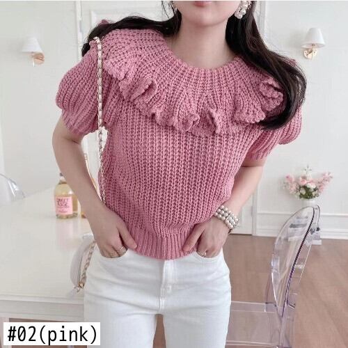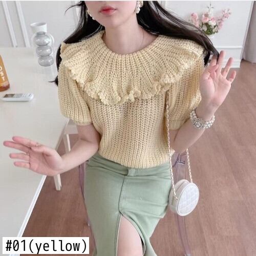 Nomikuma スウィートピーターパンカラープルオーバーニットトップス因果半袖無地女性セーター春夏ニット ショート ハーフスリーブ 大人ガーリー キュート カジュアル スプリング 春物 サマー 夏物 ソリッドカラー kor95558019152
