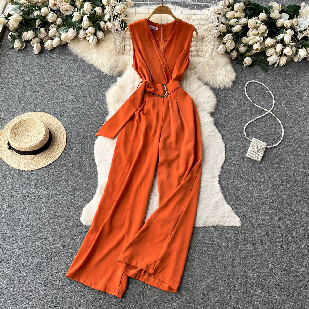 Nomikuma 夏セクシーな V ネックボディスーツ包帯スリムウエストジャンプスーツノースリーブロンパース サマー 夏物 Vネック