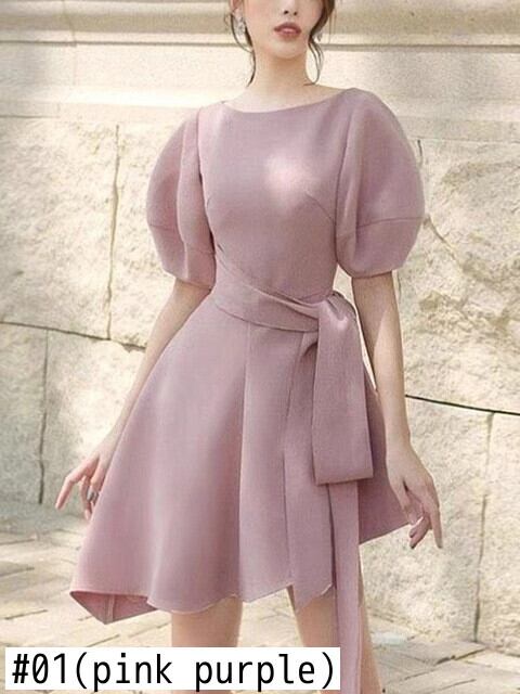 Nomikuma 包帯スリムウエストスウィートパフスリーブドレス春 Sumemr ドレス O ネック Vestidos 大人ガーリー キュート カジュアル スプリング 春物 Oネック