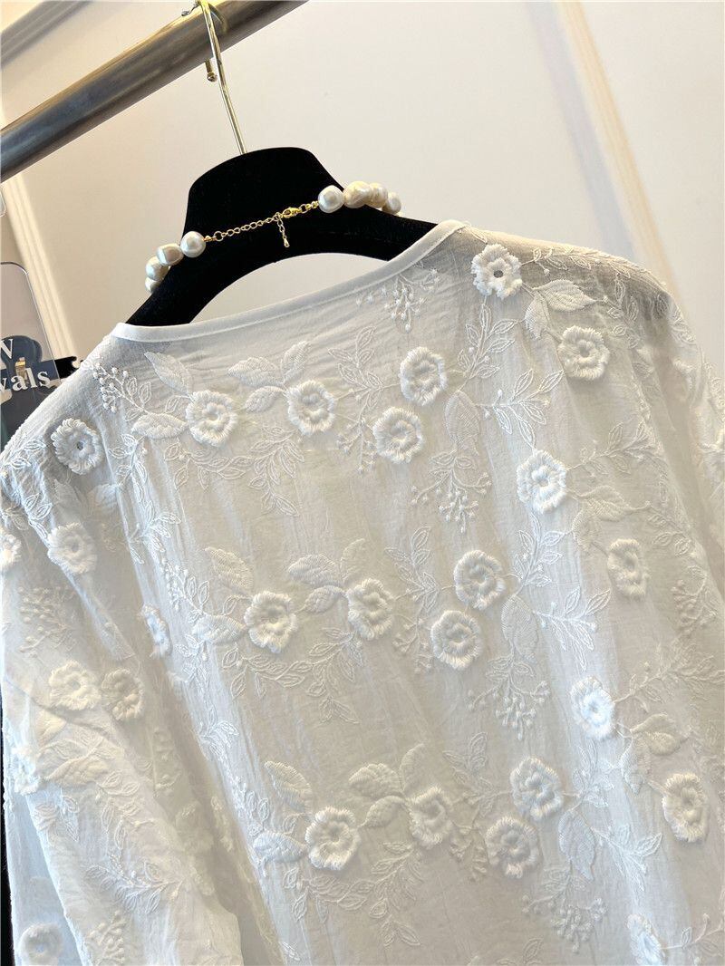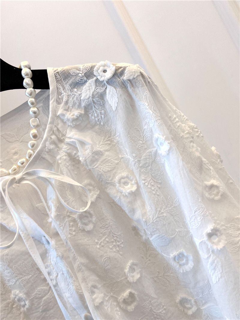 Nomikuma シックな刺繍レースアップ O ネック ブラウス トップス甘いフレア スリーブ春夏シャツ デ フレアスリーブ 大人ガーリー スウィート キュート カジュアル スプリング 春物 Oネック