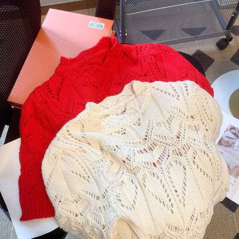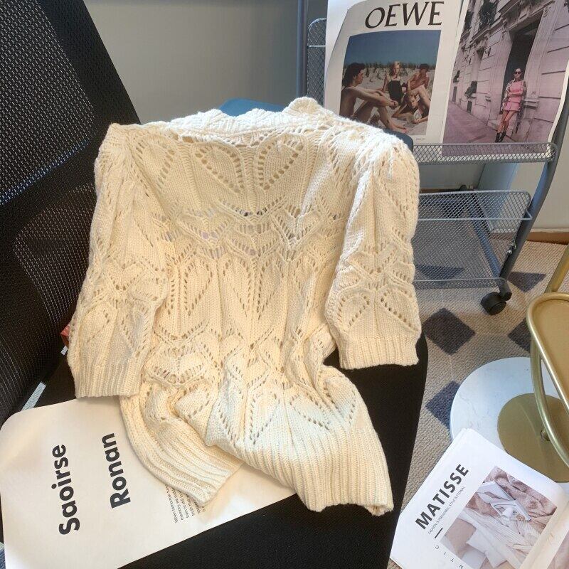 ノミクマホックホックアウトセーター半袖Oネックプルオーバーニット春夏ニットトップスジャンパー ショート ハーフスリーブ スプリング 春物 サマー 夏物