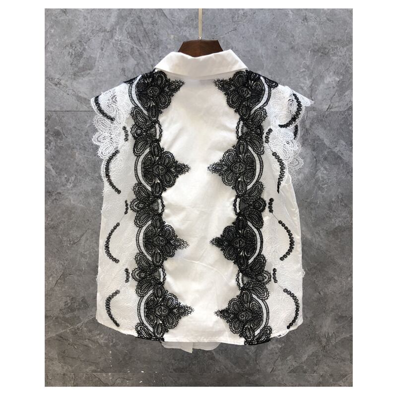 Nomikuma シックな刺繍レース ノースリーブ ブラウス夏トップス ターンダウン襟シャツ サマー 夏物