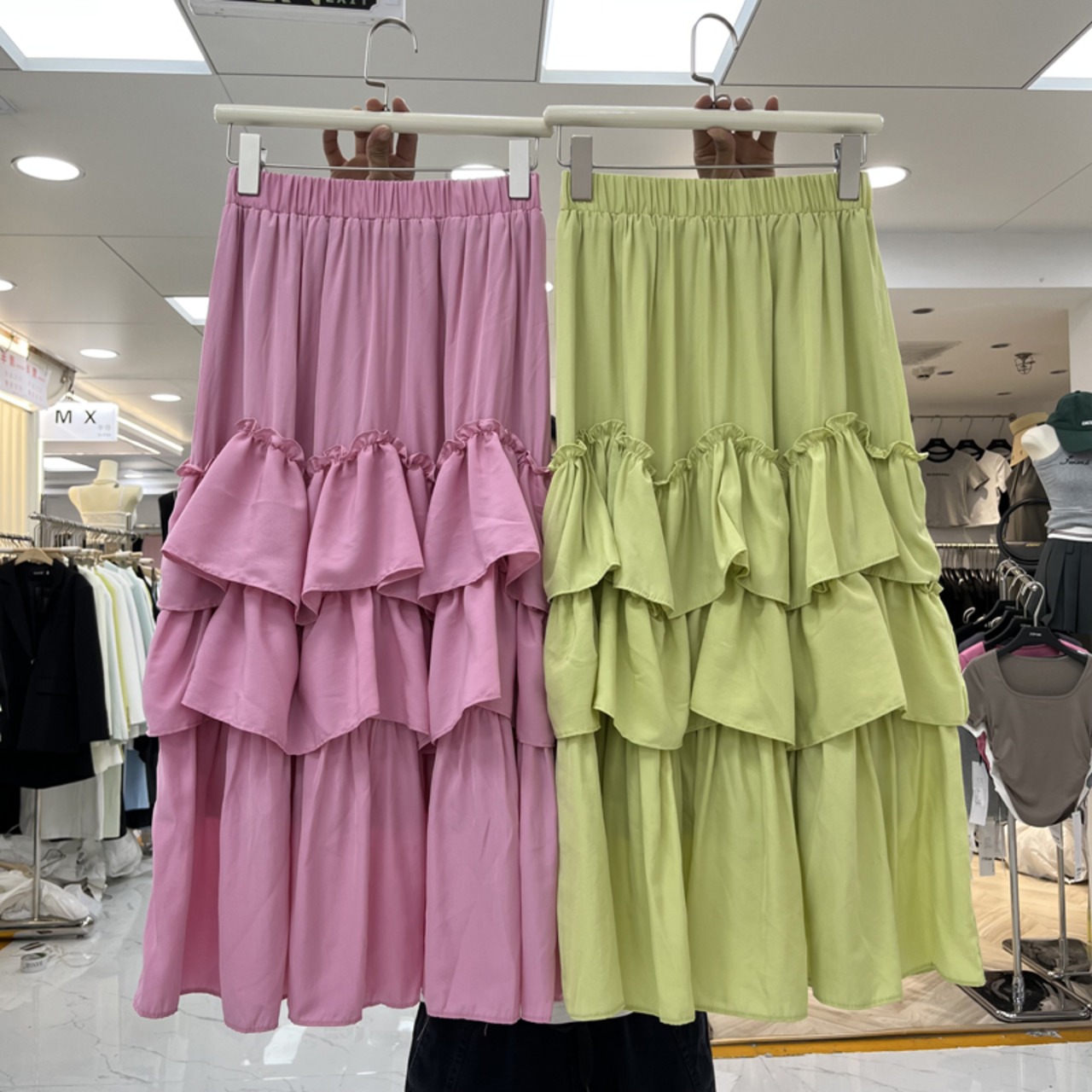 Nomikuma 甘いレイヤード フリル パッチワーク A ライン スカート レディース春夏ボトムス弾性ウエスト スカート エラスティック 伸縮 大人ガーリー スウィート キュート カジュアル スプリング 春物 サマー 夏物 Aライン