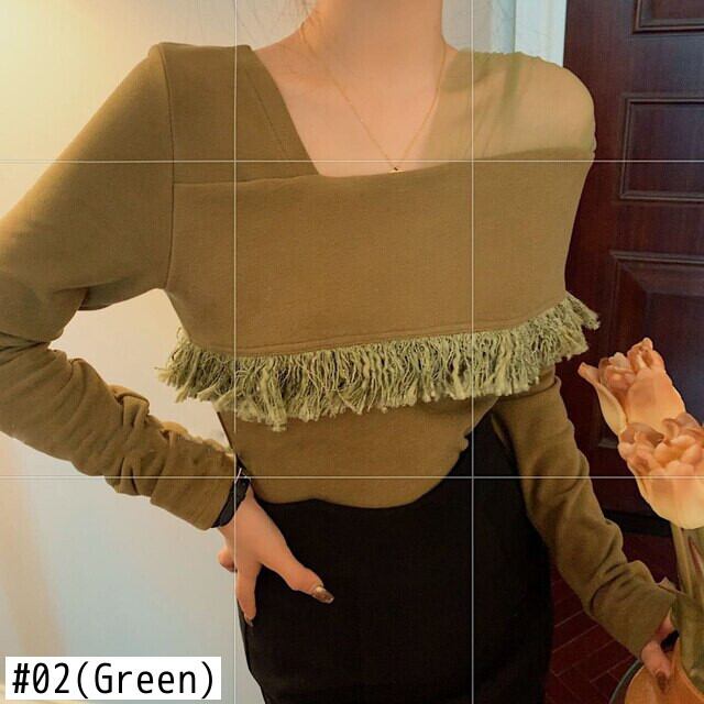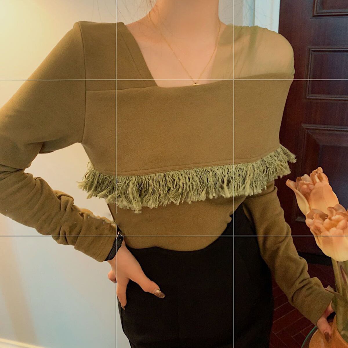 Nomikuma シックな電話パッチワーク Tシャツメッシュパッチワークスキュー襟長袖底入れ Tシャツトップス ロング