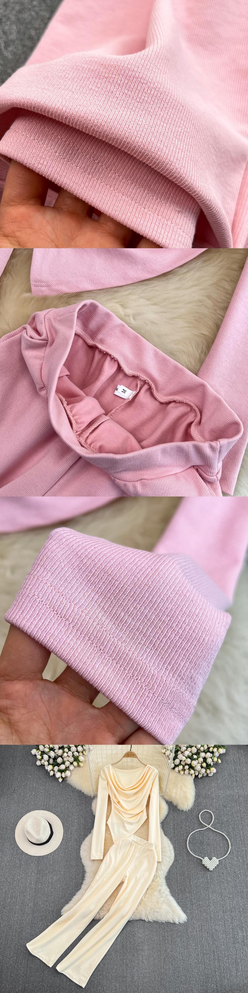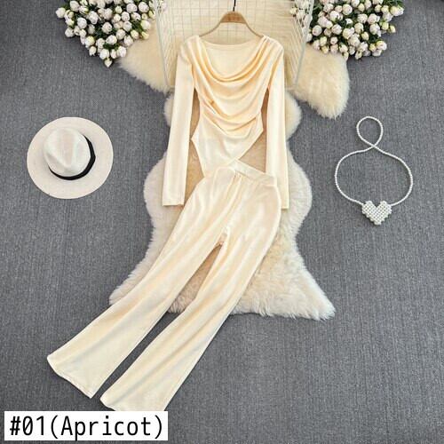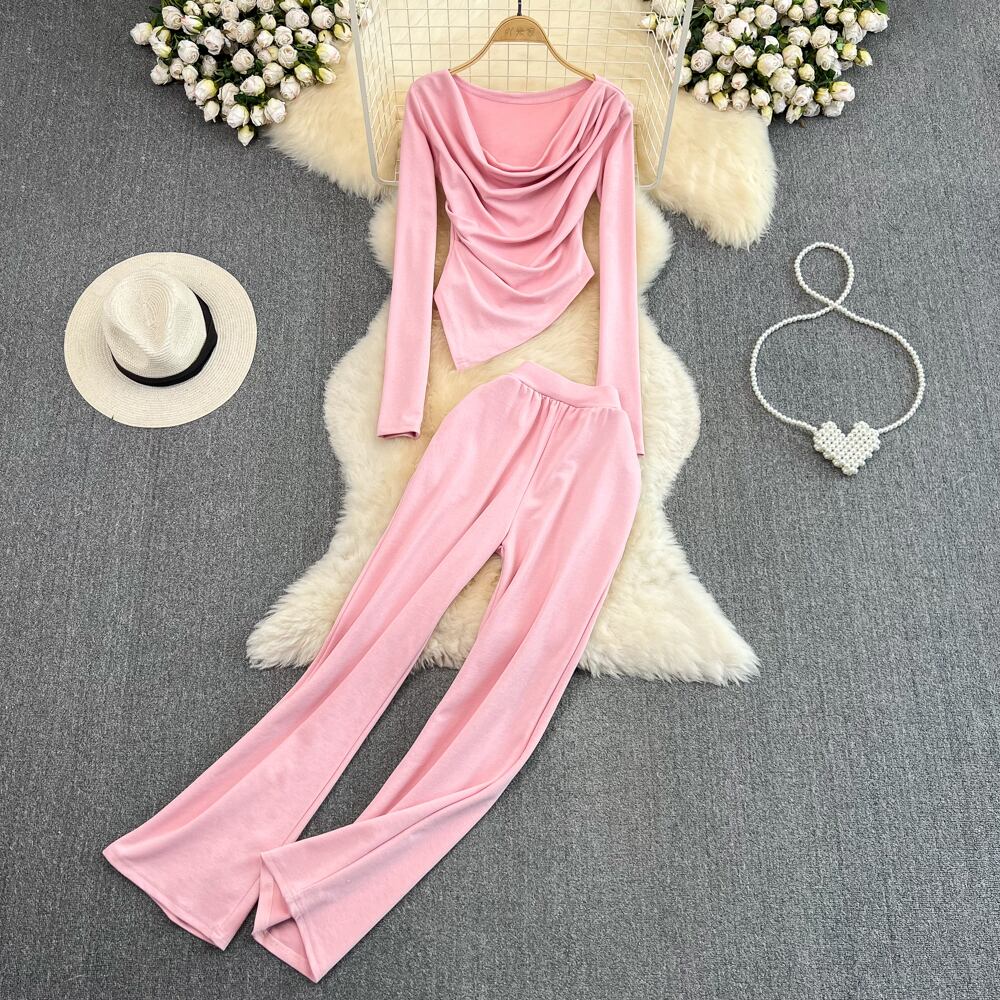 Nomikuma セット セクシー スリム イレギュラー Tシャツ トップス + ウエスト ワイドレッグ ロングパンツ レディース ツーピース 衣装 ワイドパンツ
