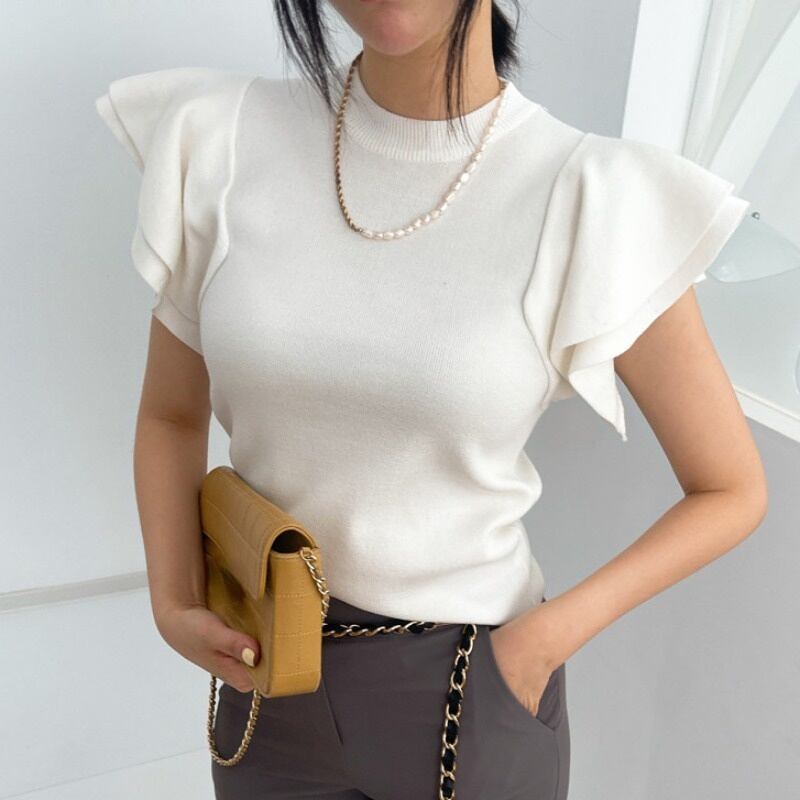 Nomikuma シックフライングスリーブニット Tシャツスリムストレッチ底入れ Tシャツトップス夏のグラフィック Tシャツ サマー 夏物