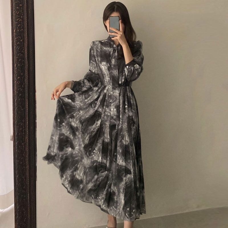 Nomikuma シックな春包帯スタンドカラードレスヒットカラー絞り染めウエスト A ライン Vestidos スプリング 春物 Aライン