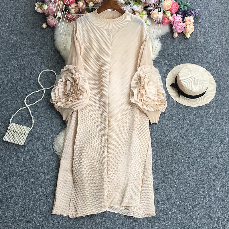 Nomikuma シックなフラワーパフスリーブドレス因果 O ネックドレス夏 A ライン Vestidos デ サマー 夏物 Oネック Aライン フラワーデザイン