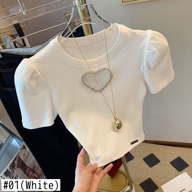 Nomikuma ウエストスリムショートニット Tシャツ恋人ハート中空アウト Tシャツ夏パフスリーブグラフィック Tシャツ サマー 夏物