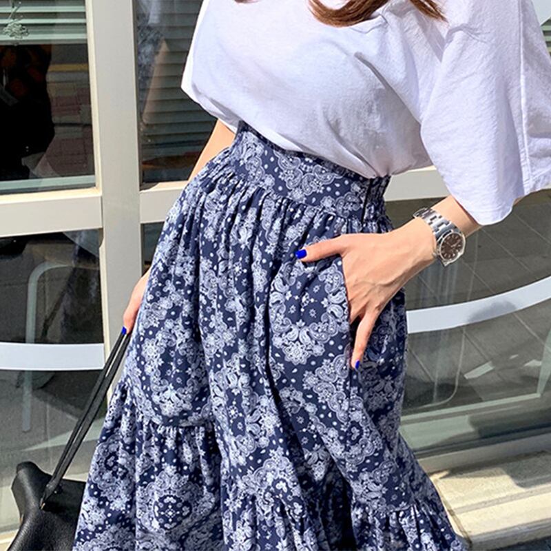 Nomikuma シックな夏のプリントスカートののウエストスカート夏ボトムス段 Faldas デ サマー 夏物