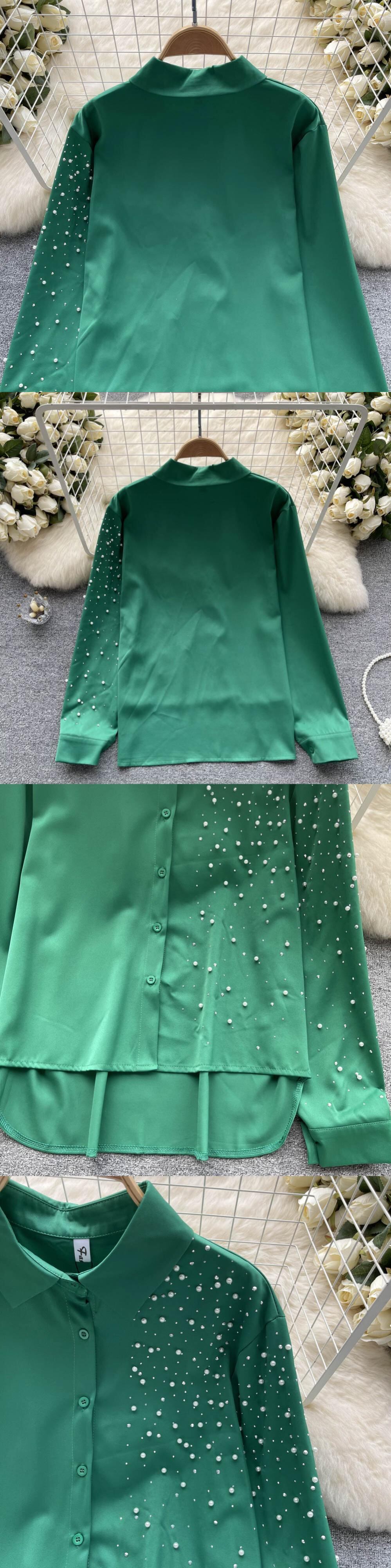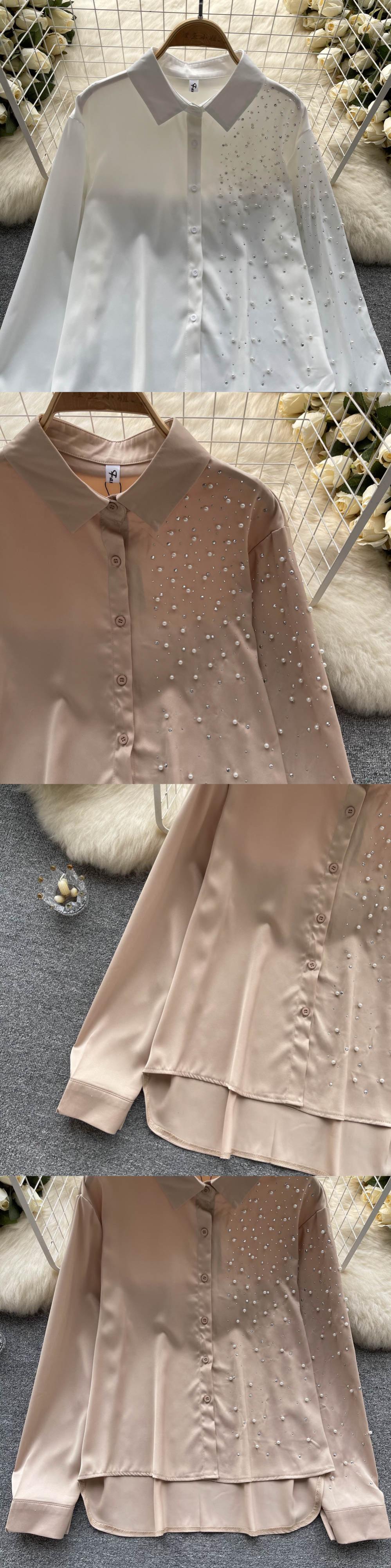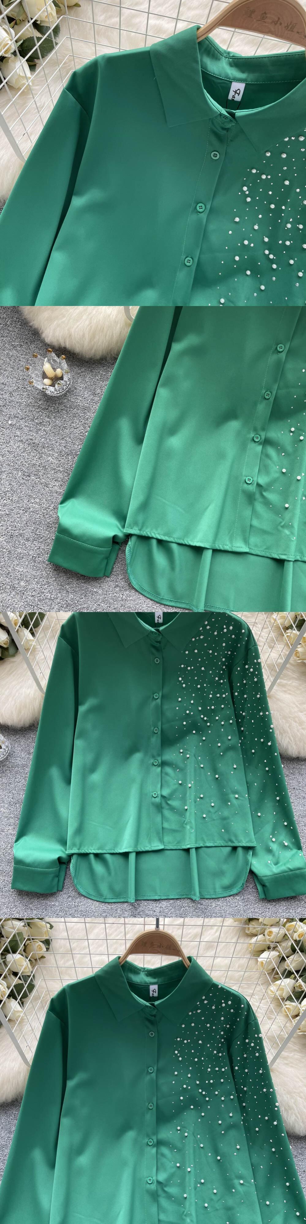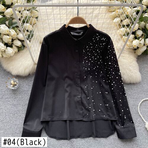 ノミクマビーズブラウス春秋のシャツ不規則なサテンデ スプリング 春物 オータム 秋物