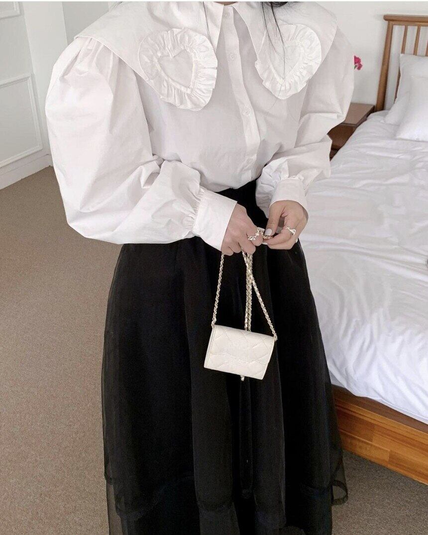 Nomikuma ラブハートターンダウンカラーブラウストップスシックなパフスリーブシャツ Sprign デ