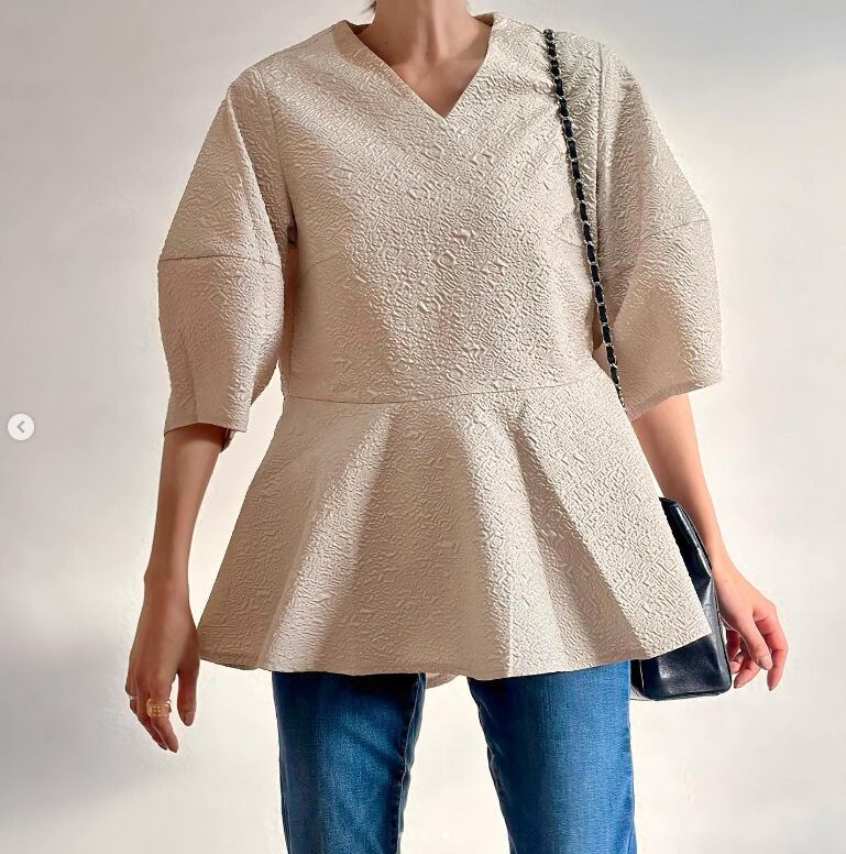 ノミクマスタイル ハーフパフスリーブ レディース トップス Vネック カジュアル プルオーバー シック スウィート シャツ 大人ガーリー キュート
